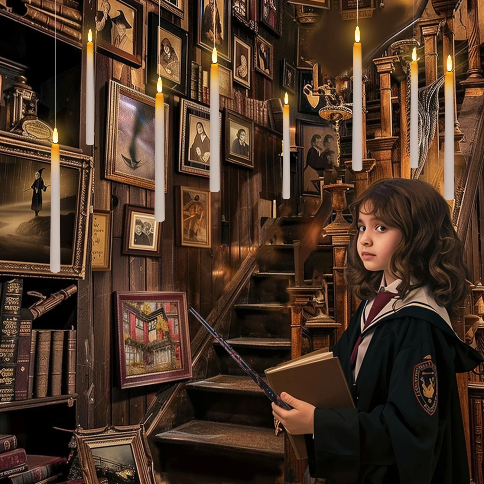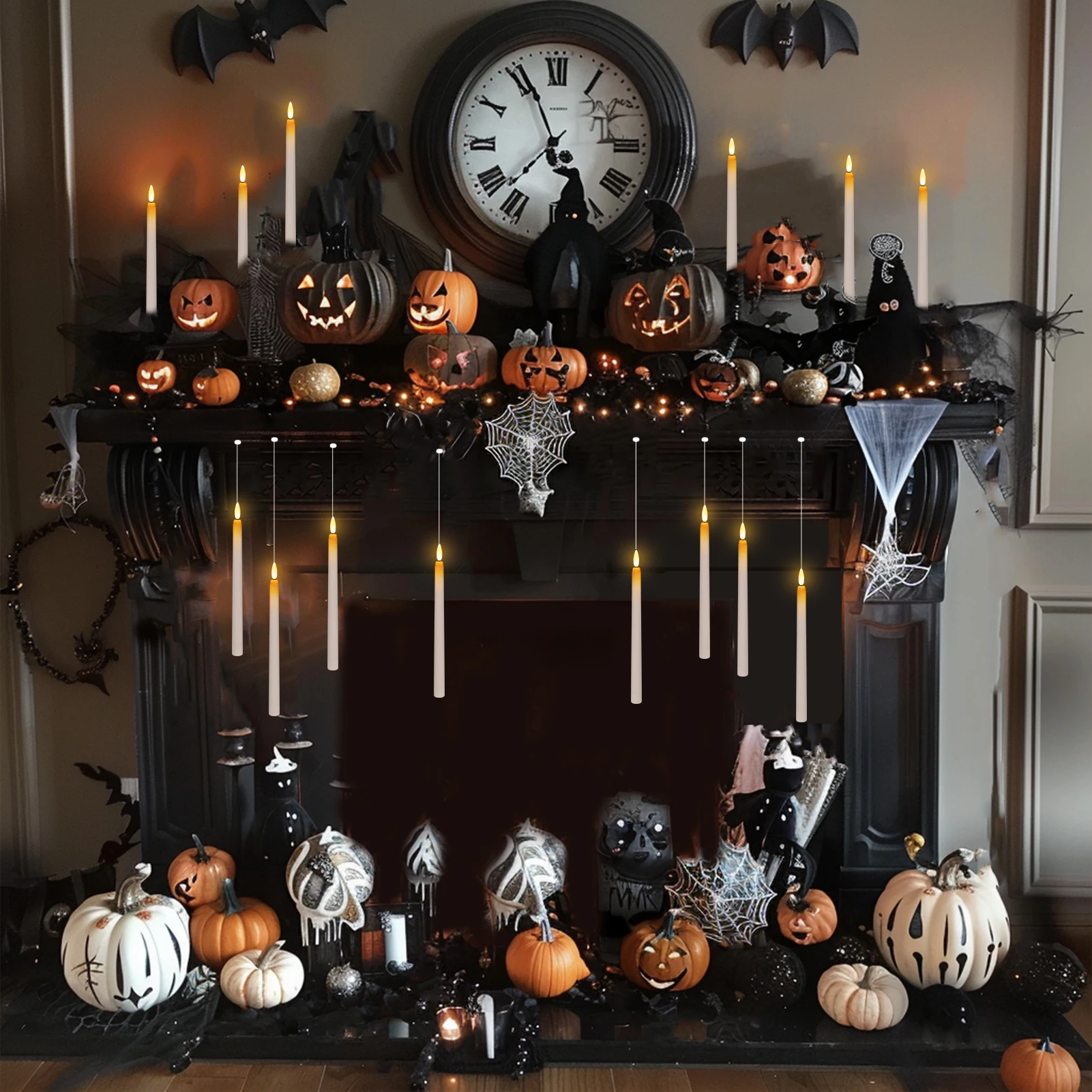 Decoración versátil: el hilo de pescar de 200 cm viene con un juego de velas de 8 piezas que permite una fácil personalización y colocación en varios entornos.Puedes recortar la línea para adaptarla a tus necesidades de decoración creativas, lo que hace que estas velas sean perfectas para cualquier ocasión.Atmósfera mágica: cree un ambiente mágico para Halloween, Navidad y otras festividades con nuestras velas flotantes y nuestro control remoto de varita mágica.El suave brillo y las llamas parpadeantes realzan la atmósfera encantadora, haciendo que sus celebraciones sean verdaderamente memorables.Opción de regalo bien pensada: nuestras velas flotantes LED son un regalo práctico y atento para sus seres queridos durante la temporada de Halloween.Ofrecen una manera fácil de agregar un toque de magia navideña a cualquier hogar, convirtiéndolos en un regalo encantador para amigos y familiares.¡Bienvenido al Mundo Mágico!Velas flotantes, magia de la varita,Crea un país de los sueños, puro y gráfico.Las estrellas brillan, los sueños se encienden,La fantasía combina con la luz de la realidad.Especificación de velas flotantes sin llama:Color de las velas: blancoMaterial de la vela: PlásticoColor de la luz: blanco cálidoTamaño: 27,8 CMFunciona con pilas: 3 pilas AAA (no incluidas)Aplicaciones: boda, Navidad, Halloween, fiestas, iglesia, decoración del hogar, fiesta de cumpleaños, fiesta temática, festival, decoración navideña.Especificación remota de varita mágica:Puede encender y apagar fácilmente la luz de las velas y también tiene una función de temporizador de 6 horas.Longitud: 13,7"Alimentación: 1 × batería AAA (no incluida)Funciones: Temporizador ON/OFF/6H