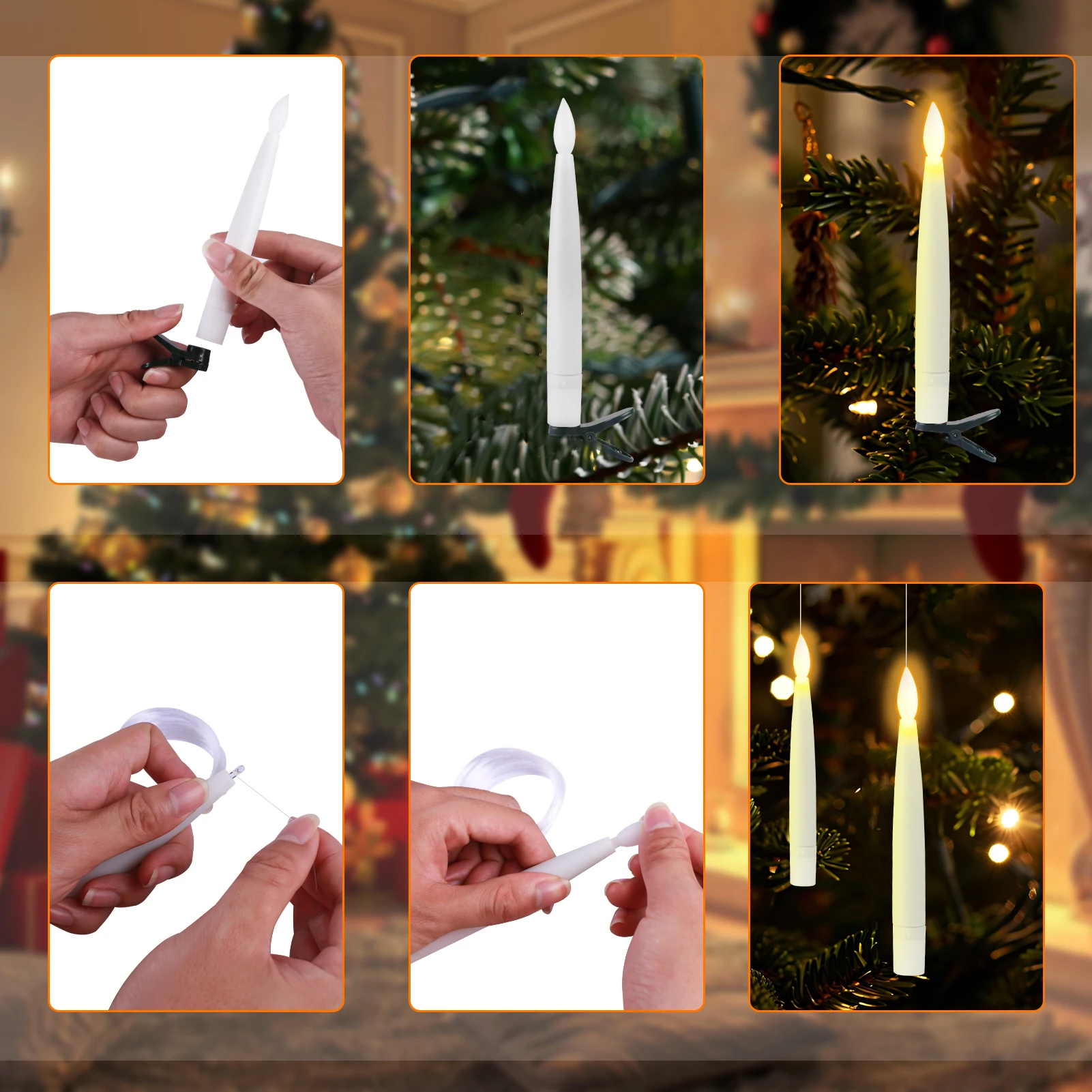 【Regalos festivos mágicos para niños】 Estas velas sin llama con control remoto de varita mágica son un regalo mágico increíble para que sus hijos jueguen con diversión mágica, que generalmente están fascinados por el tema mágico.¡Las velas colgantes con un control remoto de varita mágica traerán la sensación del mundo mágico!Juego de paquetes: recibirá 12/24/36/48 velas cónicas parpadeantes, 1/2/3/4 varita mágica, 1/2/3/4 rollos de hilo de pescar y 12/24/36/48 ganchos.