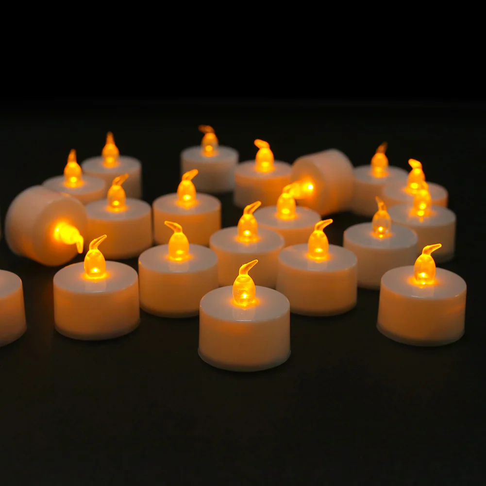 Velas LED parpadeantes sin llama con batería, candelita electrónica amarilla cálida para decoración de aniversario y boda, 12/24 unidades