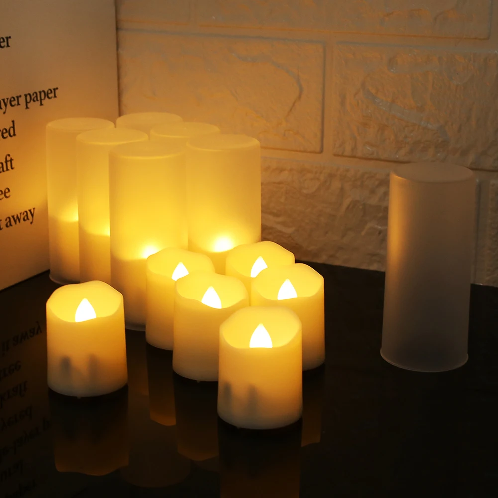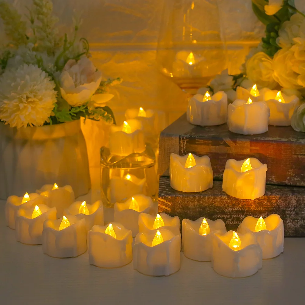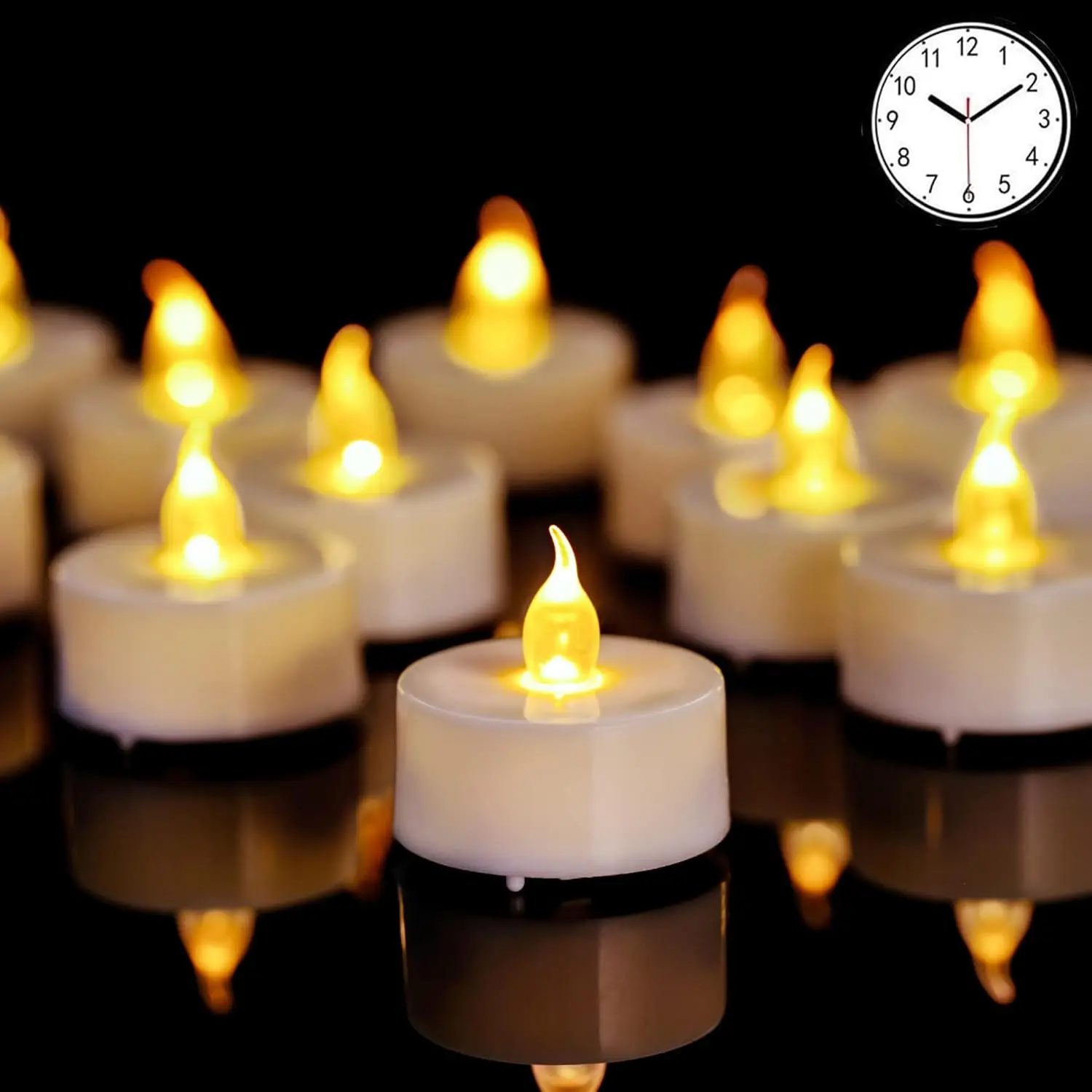 [APLICACIÓN MÚLTIPLE Y Bricolaje] Las velas de té parpadeantes sin llama son ideales para decoraciones. Se pueden usar como luces de ambiente o luces nocturnas con soportes votivos o vasos de vidrio.Puede colocar la candelita que funciona con baterías sobre una mesa u otros lugares en restaurantes, bodas en el hogar y el jardín, fiestas y decoraciones de festivales.
