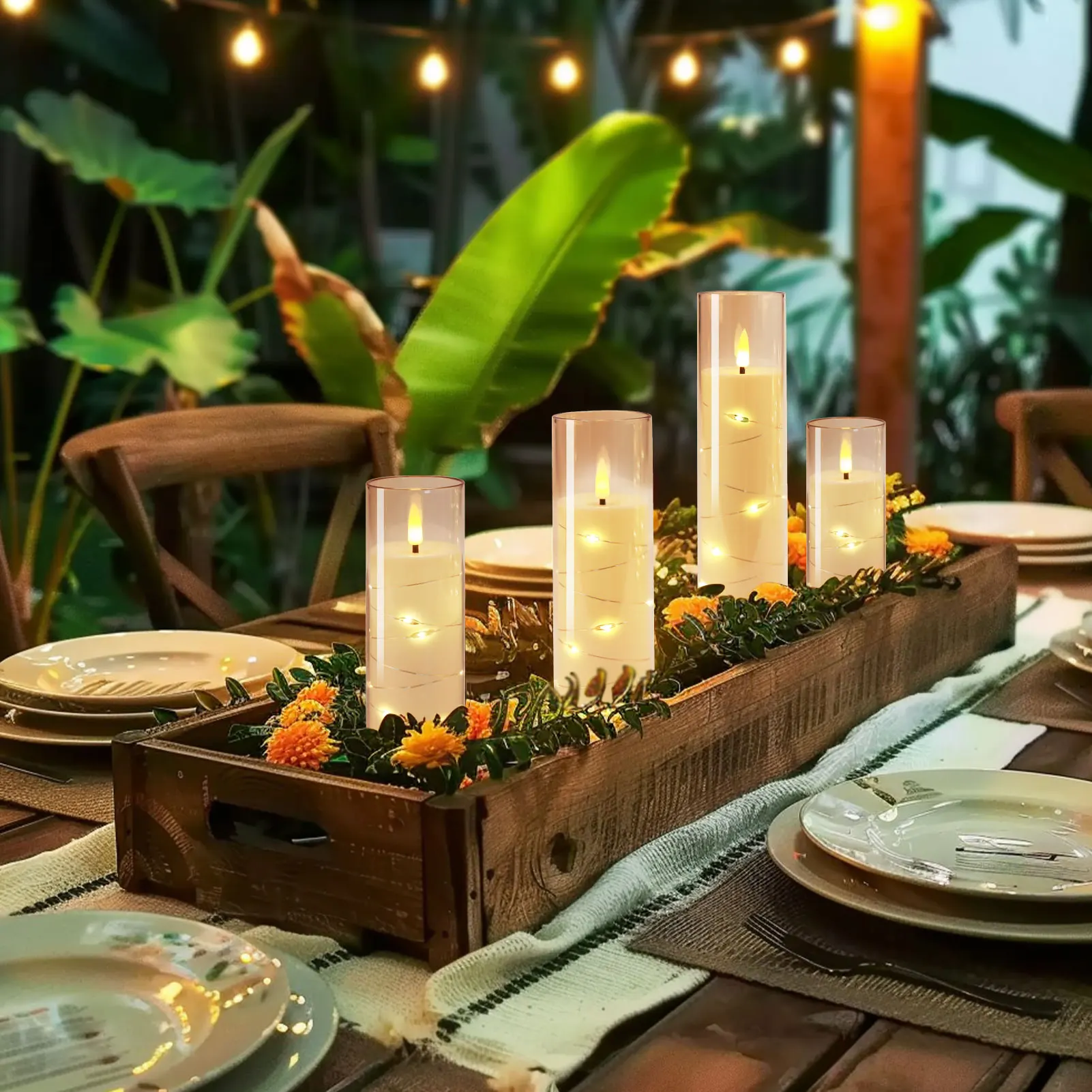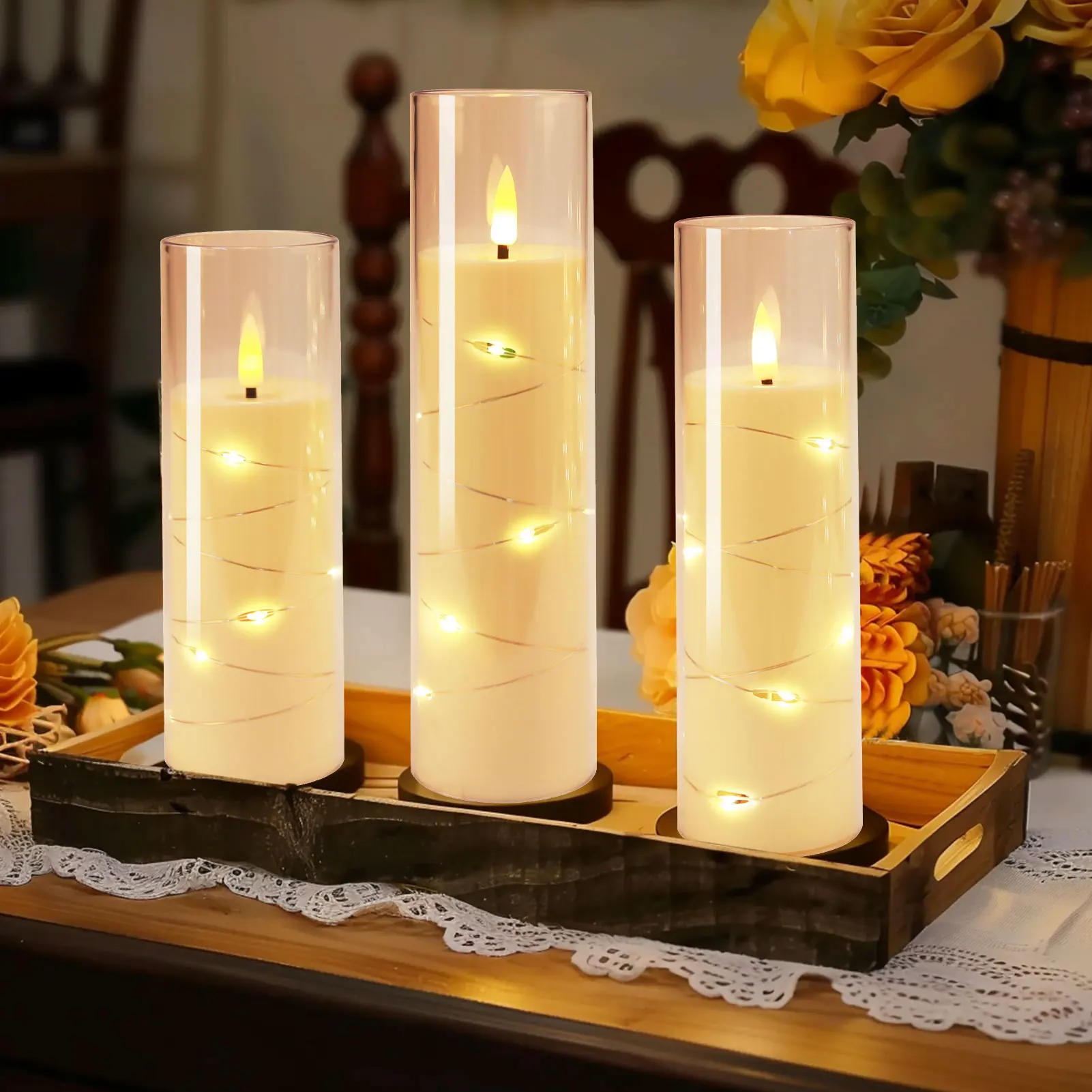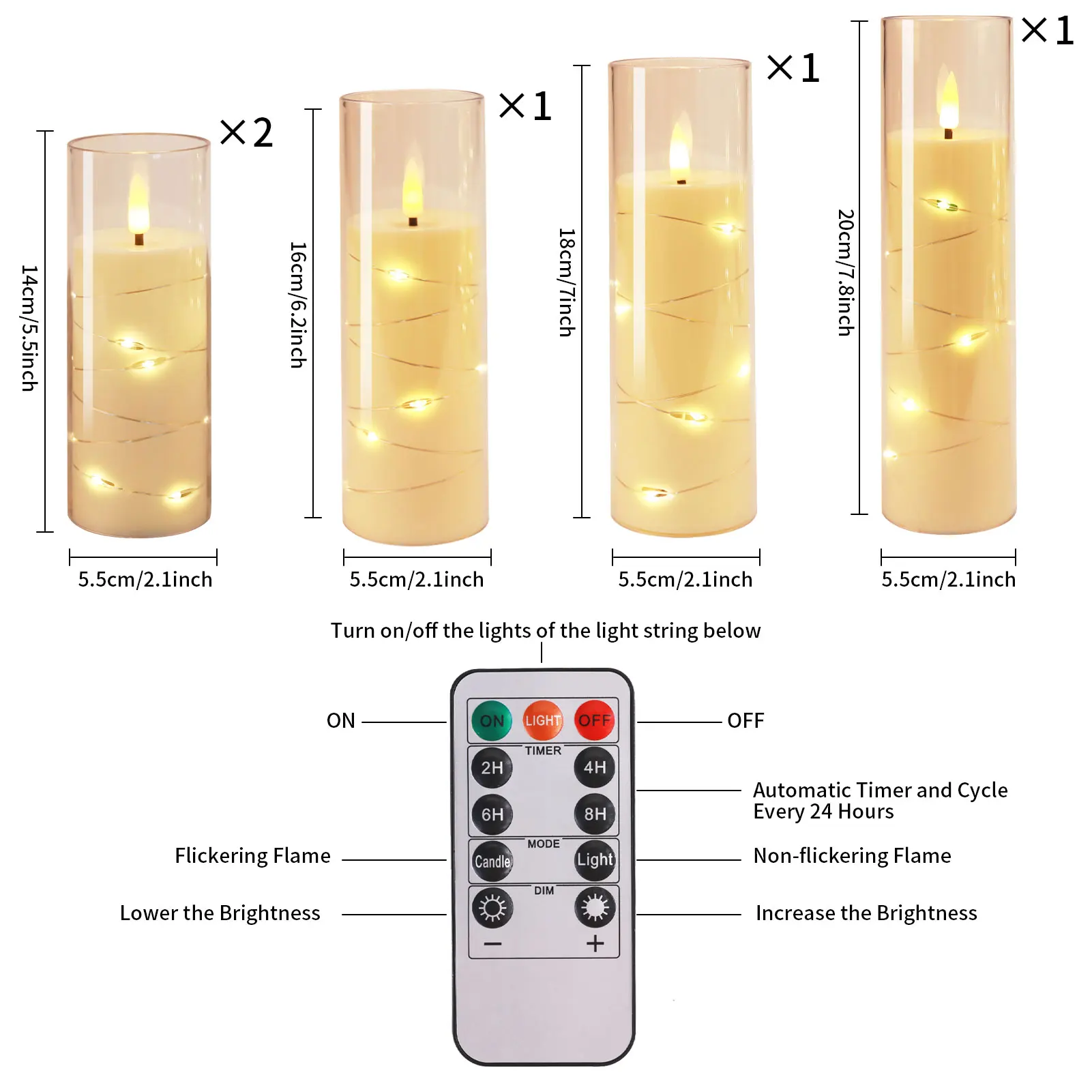 【Detalle de cuerdas de estrellas integradas】:Cada vela sin llama está adornada exclusivamente con una cuerda de estrella incrustada, lo que agrega un toque de fantasía y encanto.Los detalles estrellados realzan la estética general y realzan el atractivo decorativo de las velas LED, haciéndolas ideales para ocasiones especiales o para el uso diario.