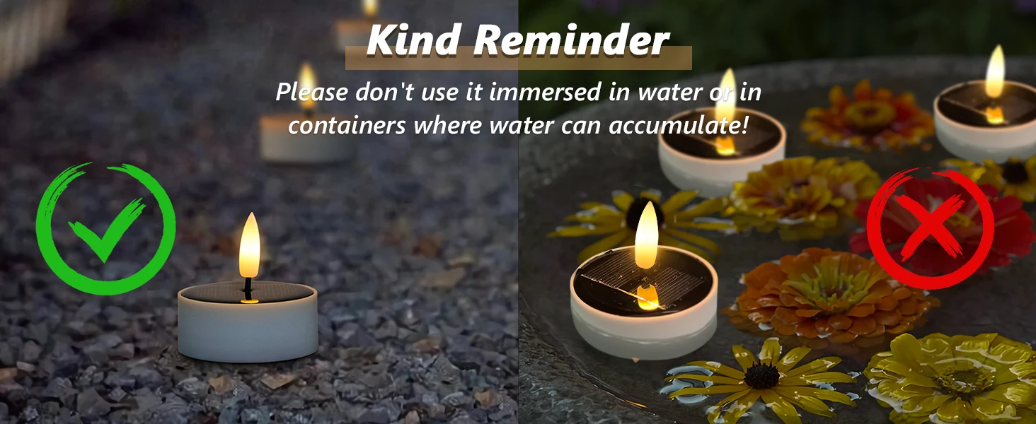 El paquete contiene:Recibirás un paquete con 6 velas solares y un manual de instrucciones detallado. Coloque las velas LED en un área muy iluminada después de recibir el paquete para recargar las velas con energía solar.