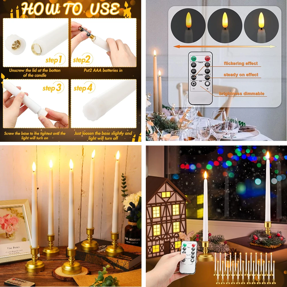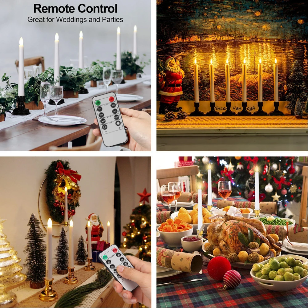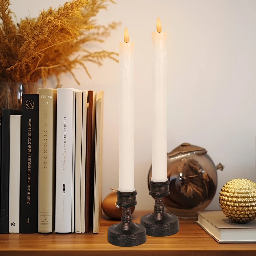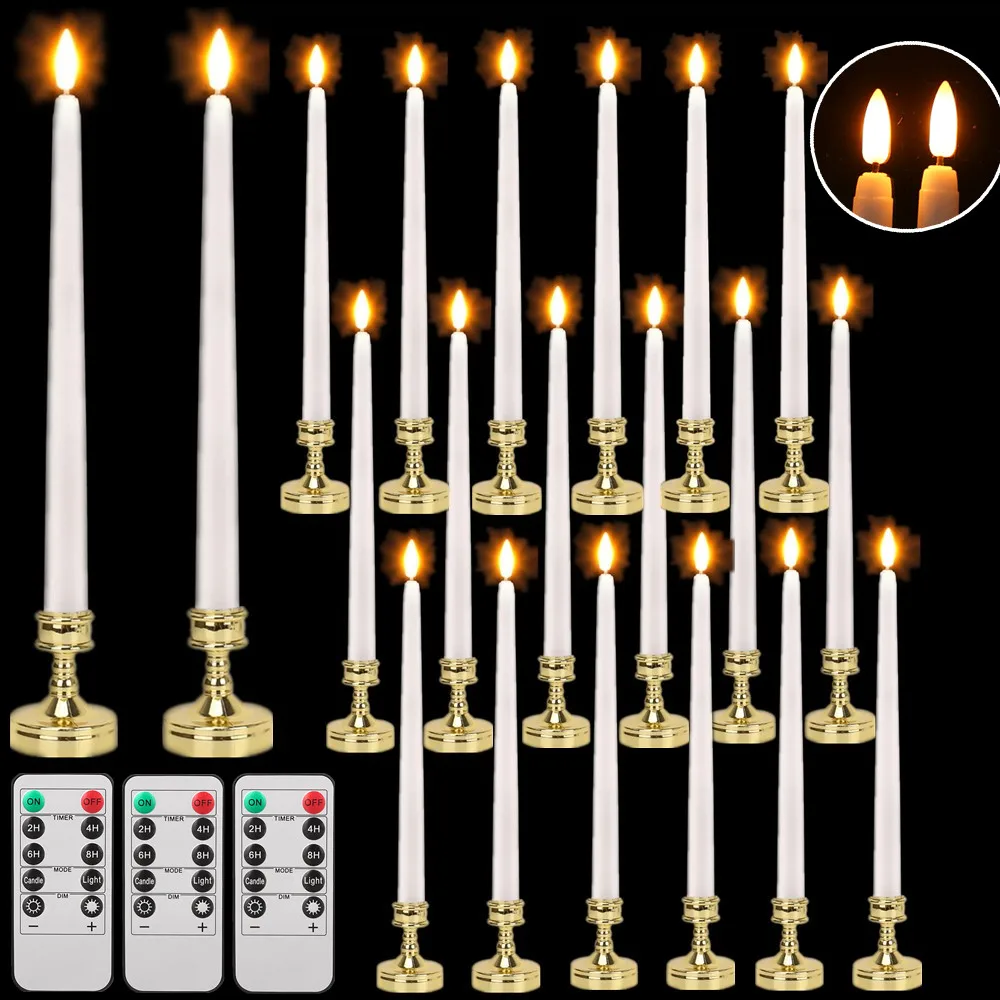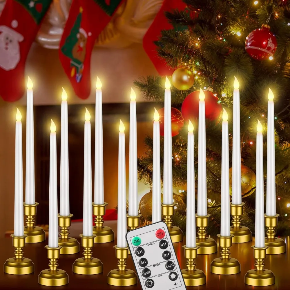 Velas de ventana con Base parpadeantes sin llama, velas cónicas, candelabros LED con soporte para decoración de Halloween y Navidad