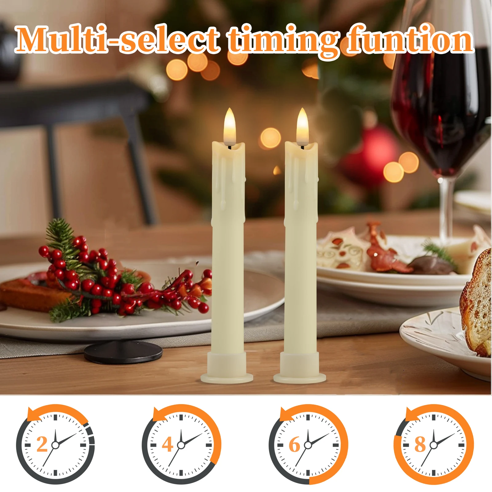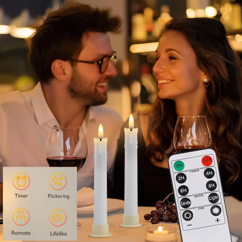 1. Con el increíble juego de velas sin llama que funciona con batería, puede tener noches ambientales perfectas con tranquilidad. Estas velas cónicas de llama de aspecto real se pueden utilizar como un gran regalo, así como un maravilloso conjunto para la decoración de su propio hogar y también para restaurante, oficina, iglesia, bodas, cenas, fiestas, decoración de habitaciones infantiles y Navidad.