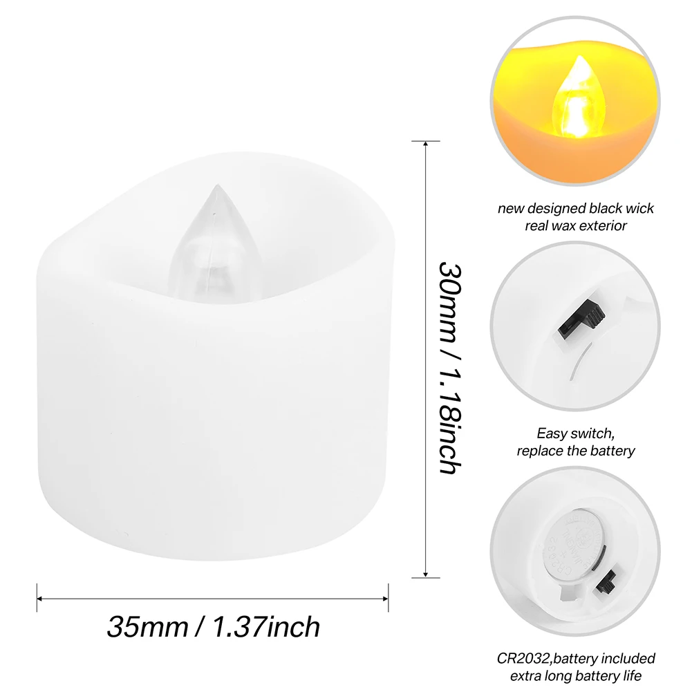 Larga duración de más de 200 horas: estas velas votivas LED (30X35MM) vienen preinstaladas con baterías CR2032 premium y proporcionarán más de 200 horas de uso continuo.