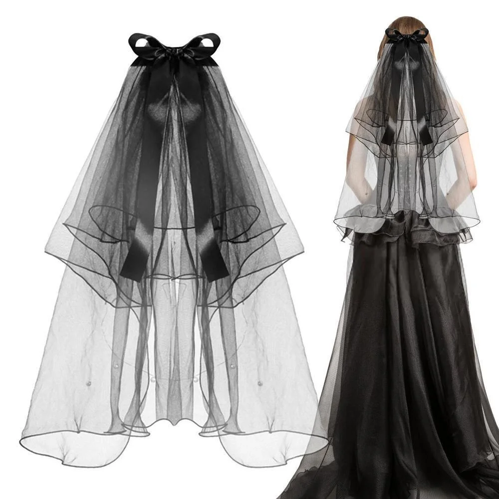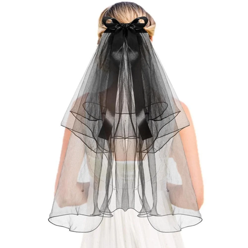 2. Decoración de perlas: este velo de 2 niveles para novias agrega un sabor dulce y encantador a su aspecto nupcial, con una delicada decoración de perlas y un color negro que va bien con su vestido de novia, mostrando su encanto y personalidad únicos.