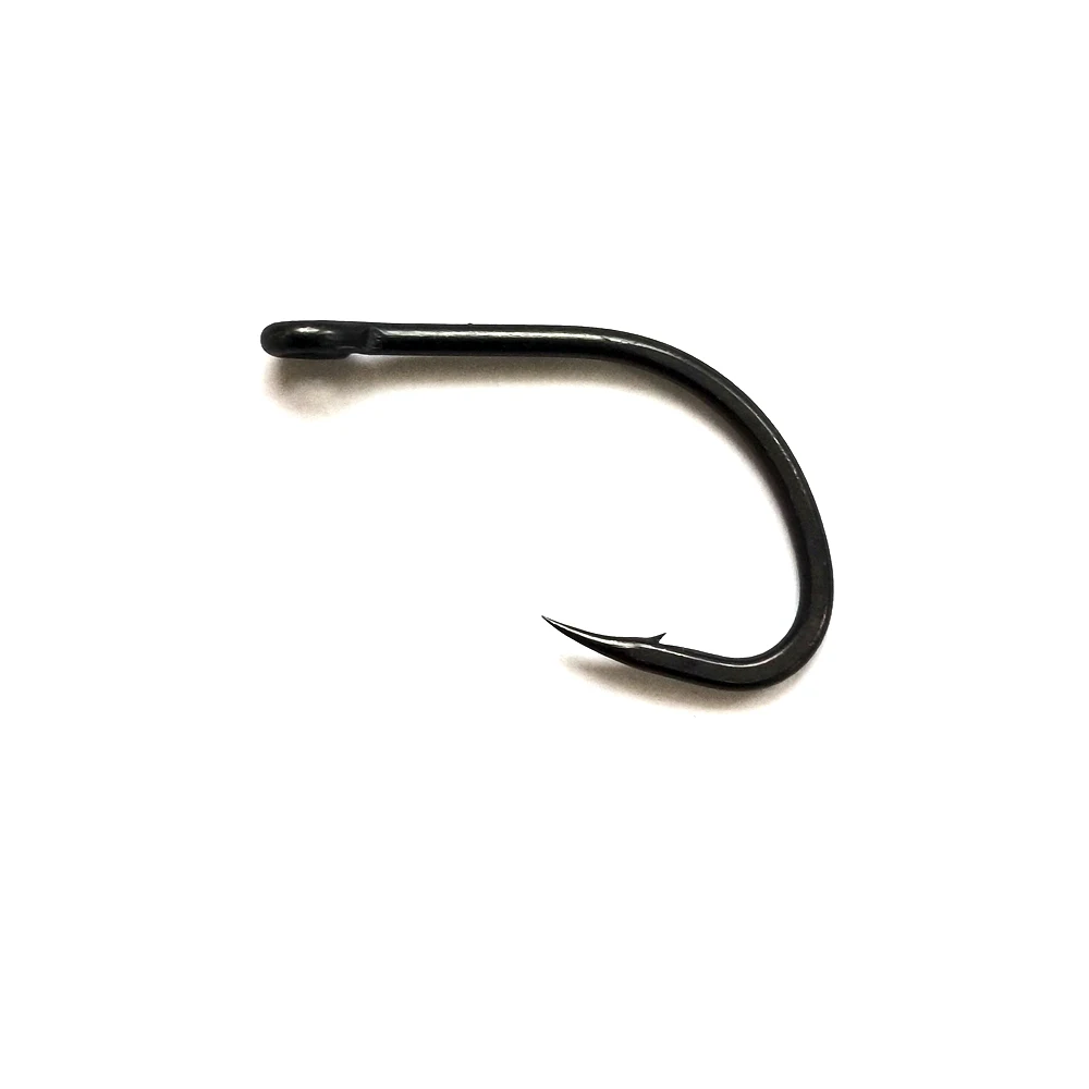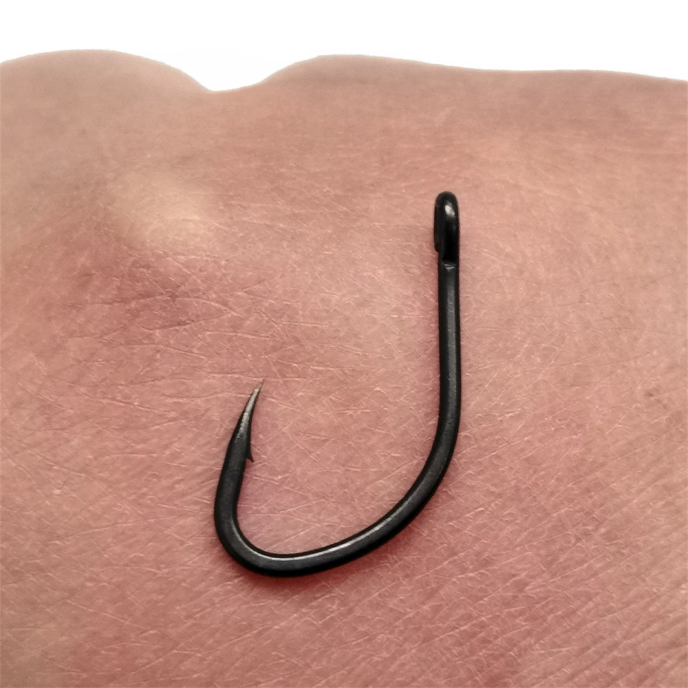 Venta al por mayor, 1000 Uds., anzuelo con ojos circulares, púas, negro mate, corriente de agua dulce, anzuelo de Pesca de carpa, productos, Material, accesorios de Pesca