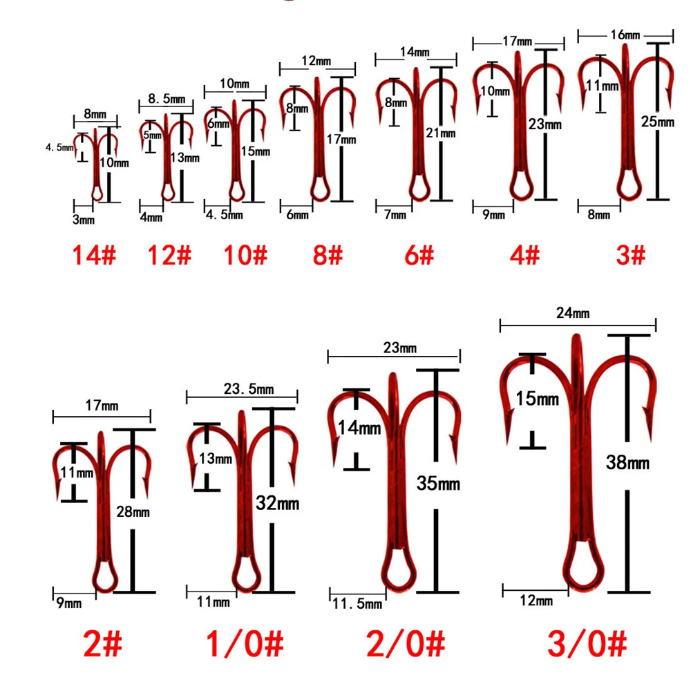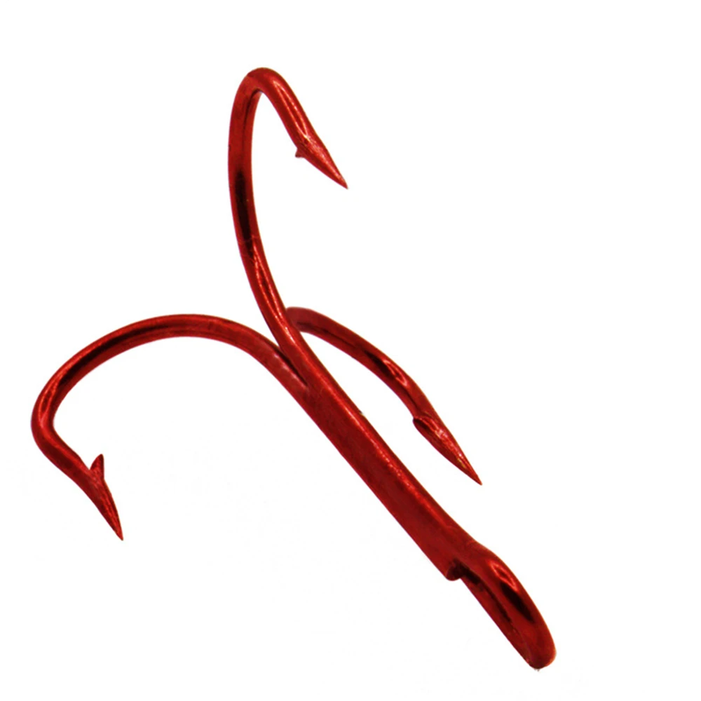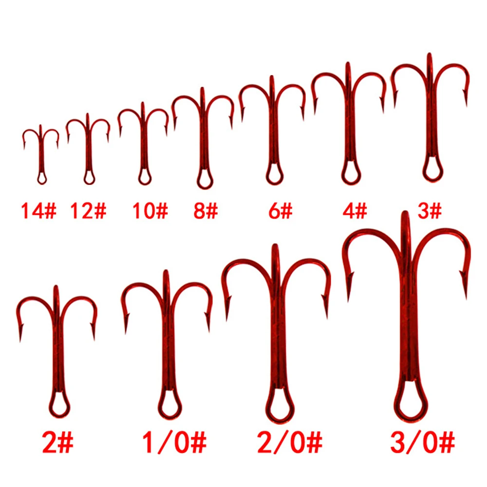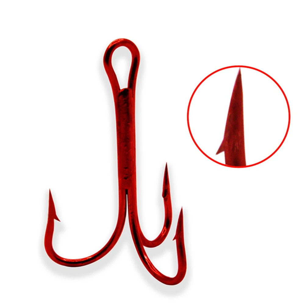 Venta al por mayor, anzuelos de Pesca a granel, anzuelos triples de acero alto en carbono rojo, aparejos de Pesca volcados, triples redondos para Pesca de lubina