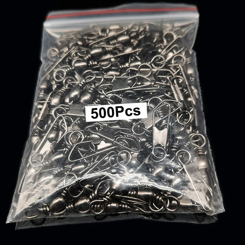 Venta al por mayor de fábrica, 500 Uds., suministros de Pesca en hielo de invierno, accesorios, conector a presión, rodamiento de Pin, anzuelo giratorio, señuelo de Pesca