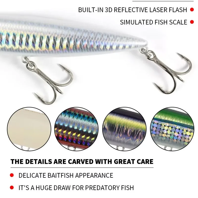 ¡Venta caliente de 3 piezas! ¡Peltura peces! Señuelos de pesca con cebo duro, 3 tamaños, cuerpo reflectante súper láser, adecuado para pesca de lubina