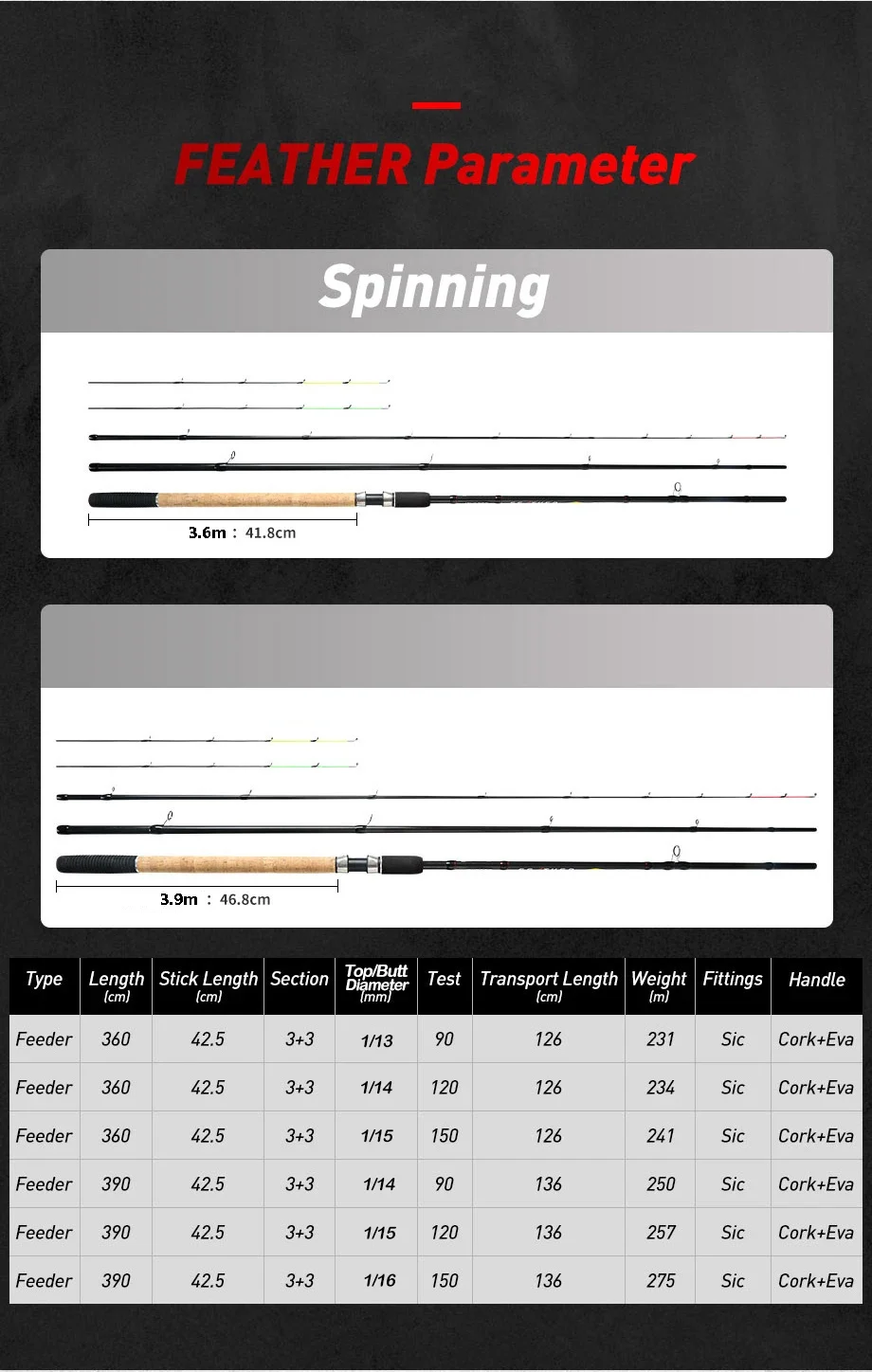 Ventas caña alimentadora ligera 3,9 m 90g pluma caña de pescar de carbono varilla alimentadora giratoria prueba caña de pescar alta calidad envío ruso solo