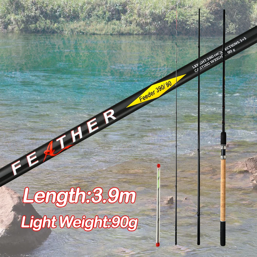 Ventas caña alimentadora ligera 3,9 m 90g pluma caña de pescar de carbono varilla alimentadora giratoria prueba caña de pescar alta calidad envío ruso solo