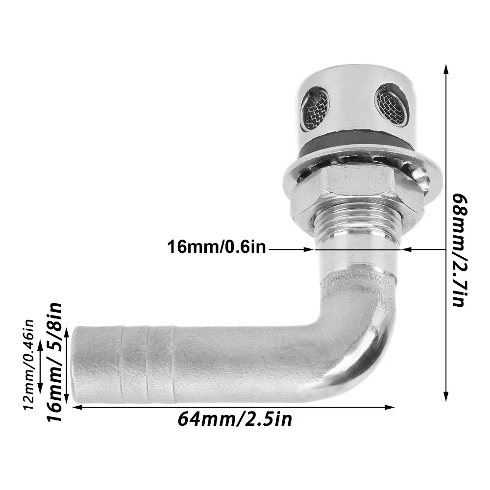 1.90° boat gas tank vent is extremely suitable for 5/8in/1.6cm hoses, long life span.
