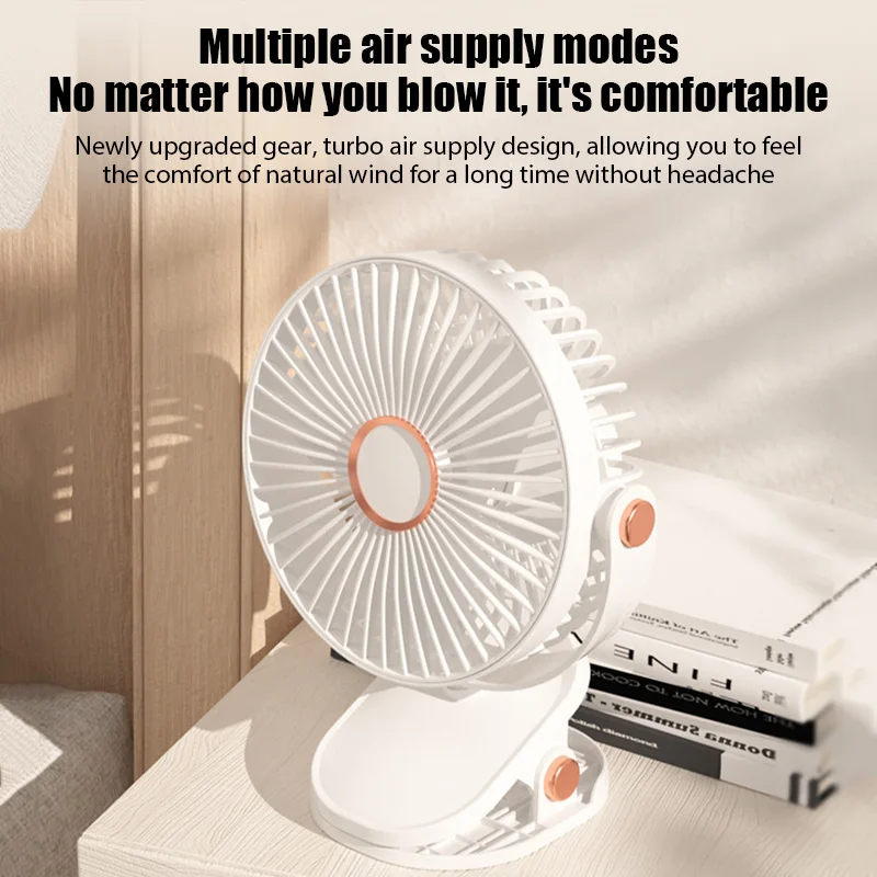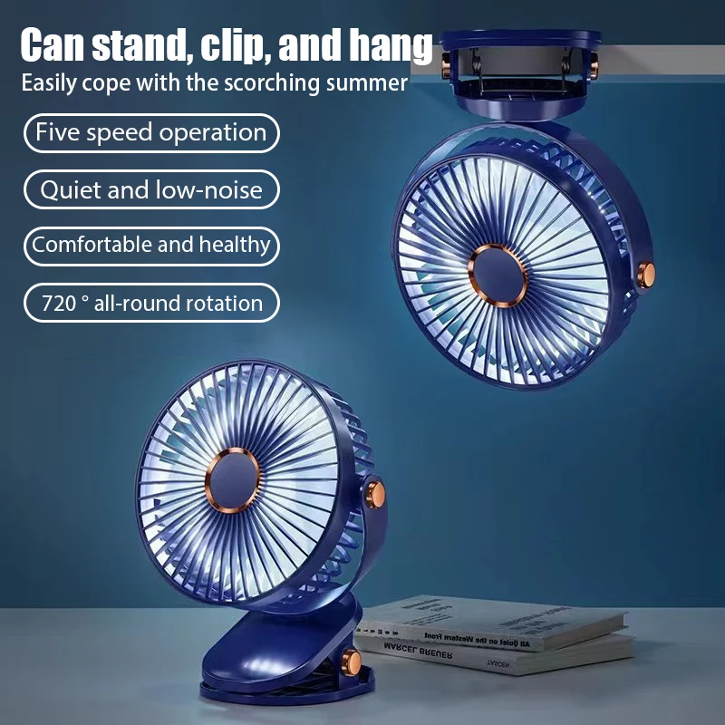 Ventilador de escritorio con Clip colgante, circulador de aire portátil recargable, ventilador eléctrico de techo, ventiladores de Camping con luz LED, Enfriador de aire con Clip