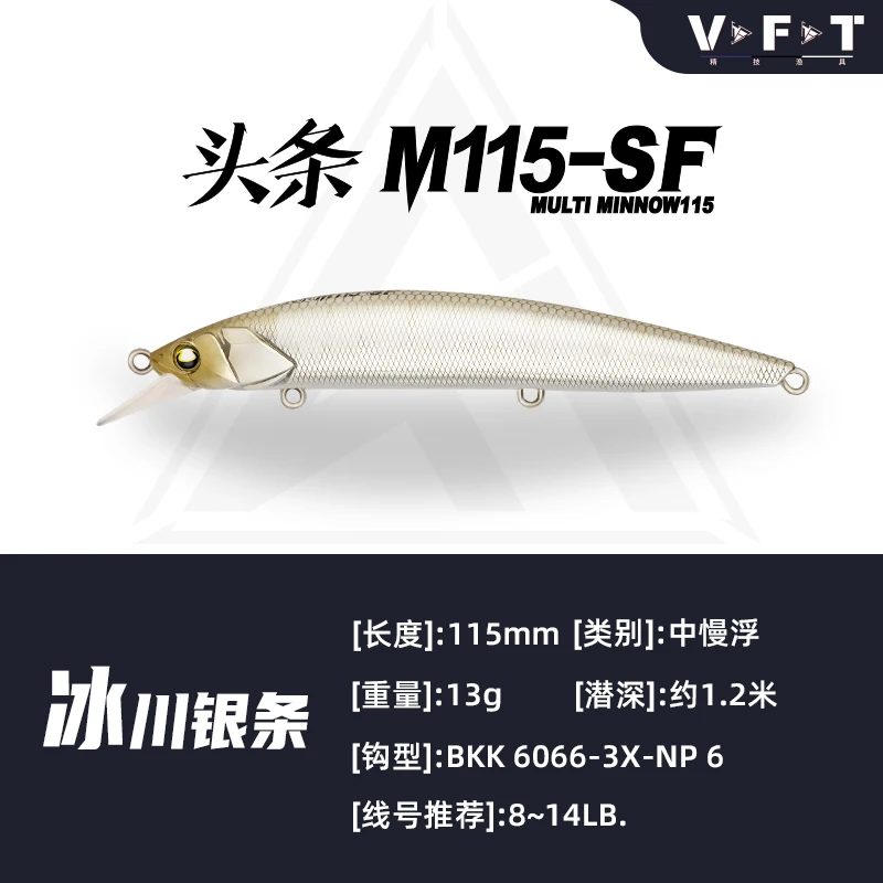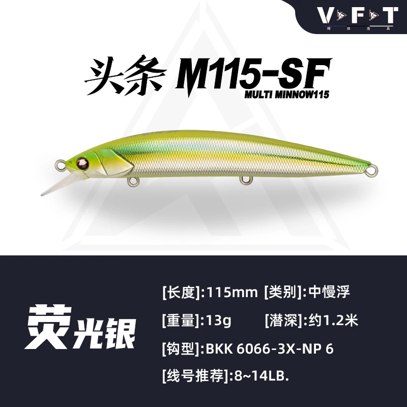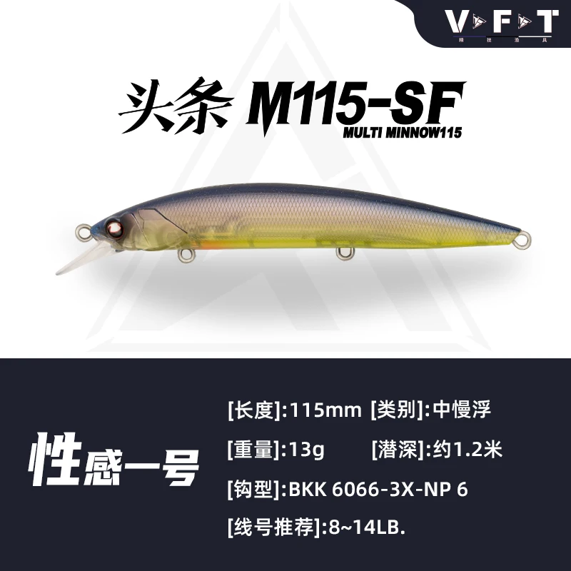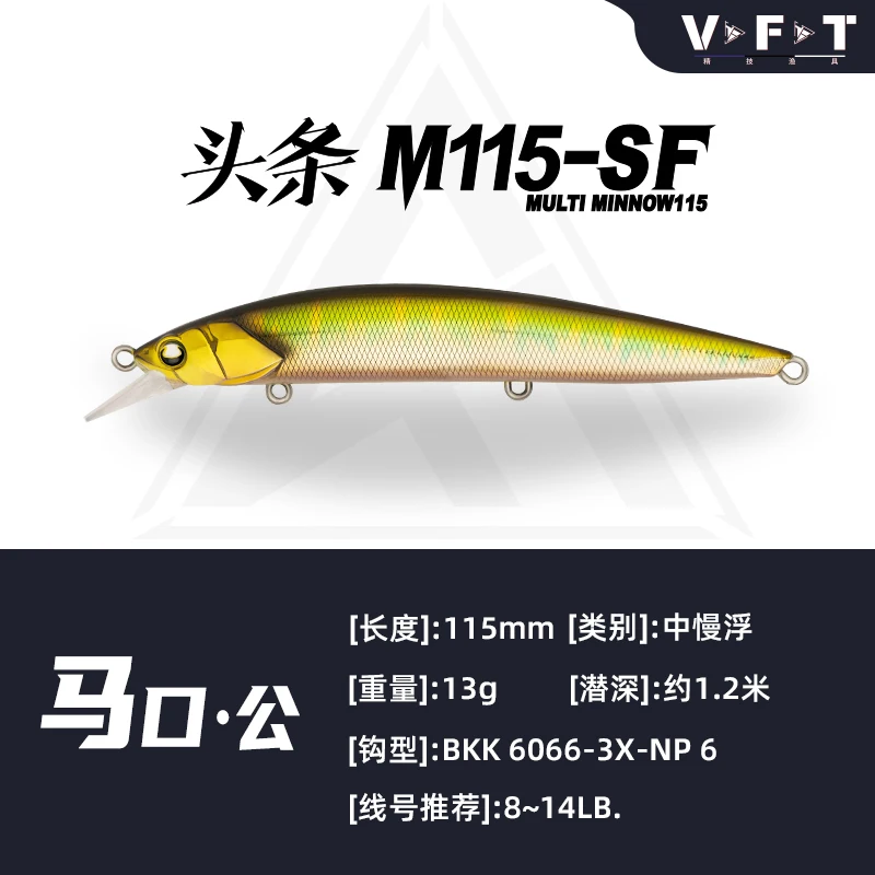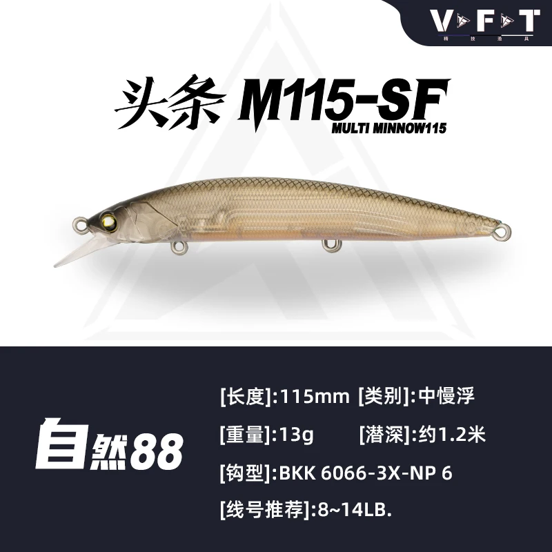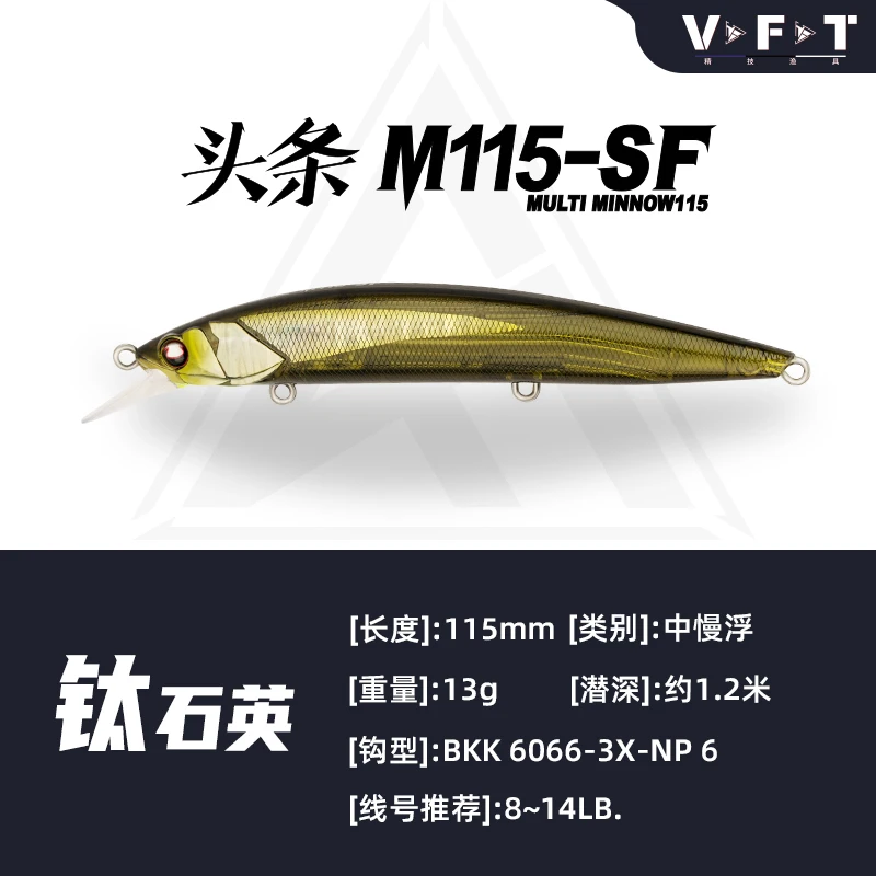VFT Toutiao-señuelo de pesca de pececillo flotante lento, 115mm/13g, Wobbler Artificial de tiro súper largo, boca deformada, cebo falso biónico, nuevo
