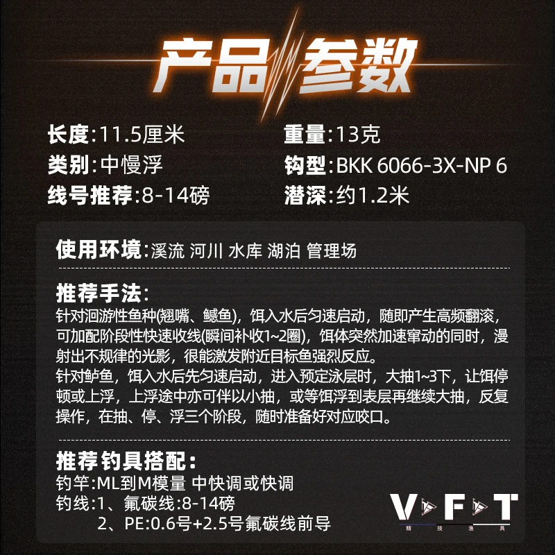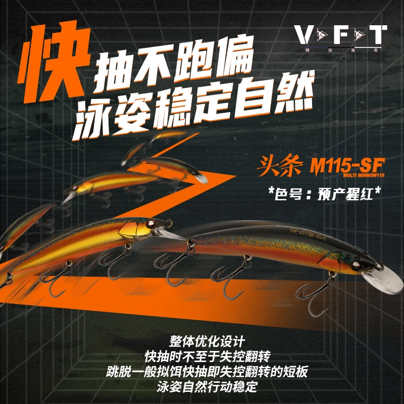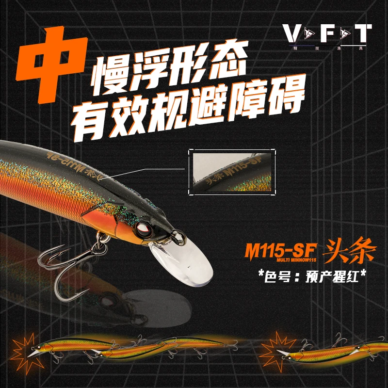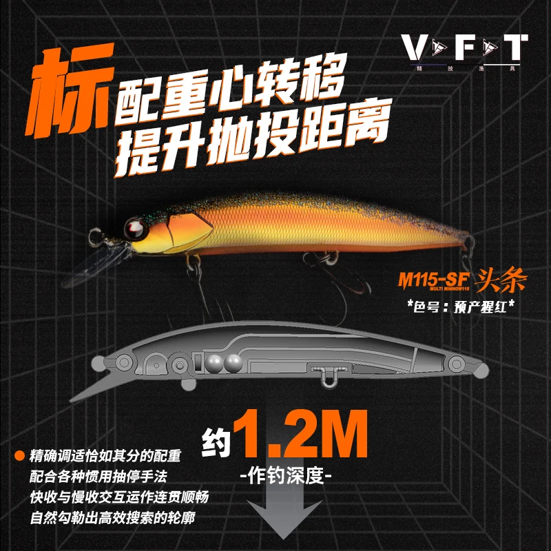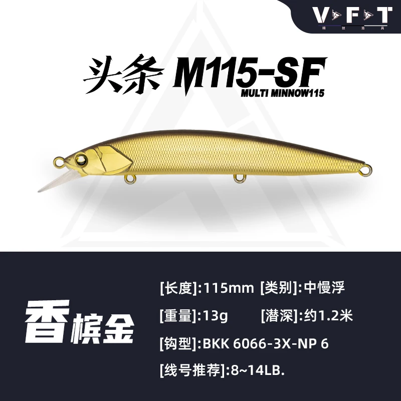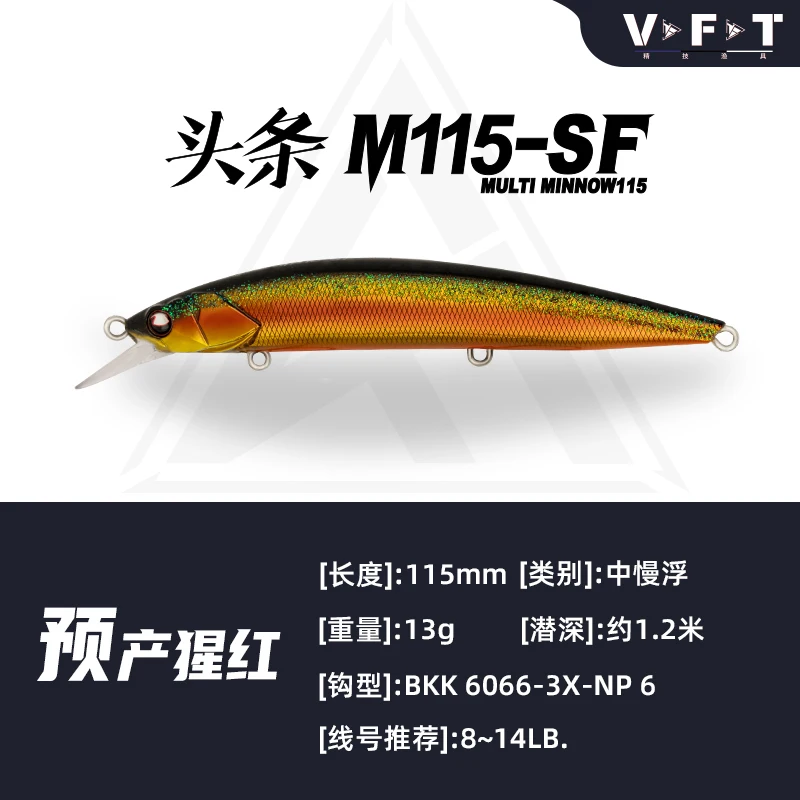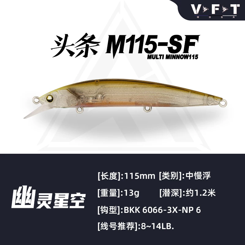 VFT Toutiao-señuelo de pesca de pececillo flotante lento, 115mm/13g, Wobbler Artificial de tiro súper largo, boca deformada, cebo falso biónico, nuevo