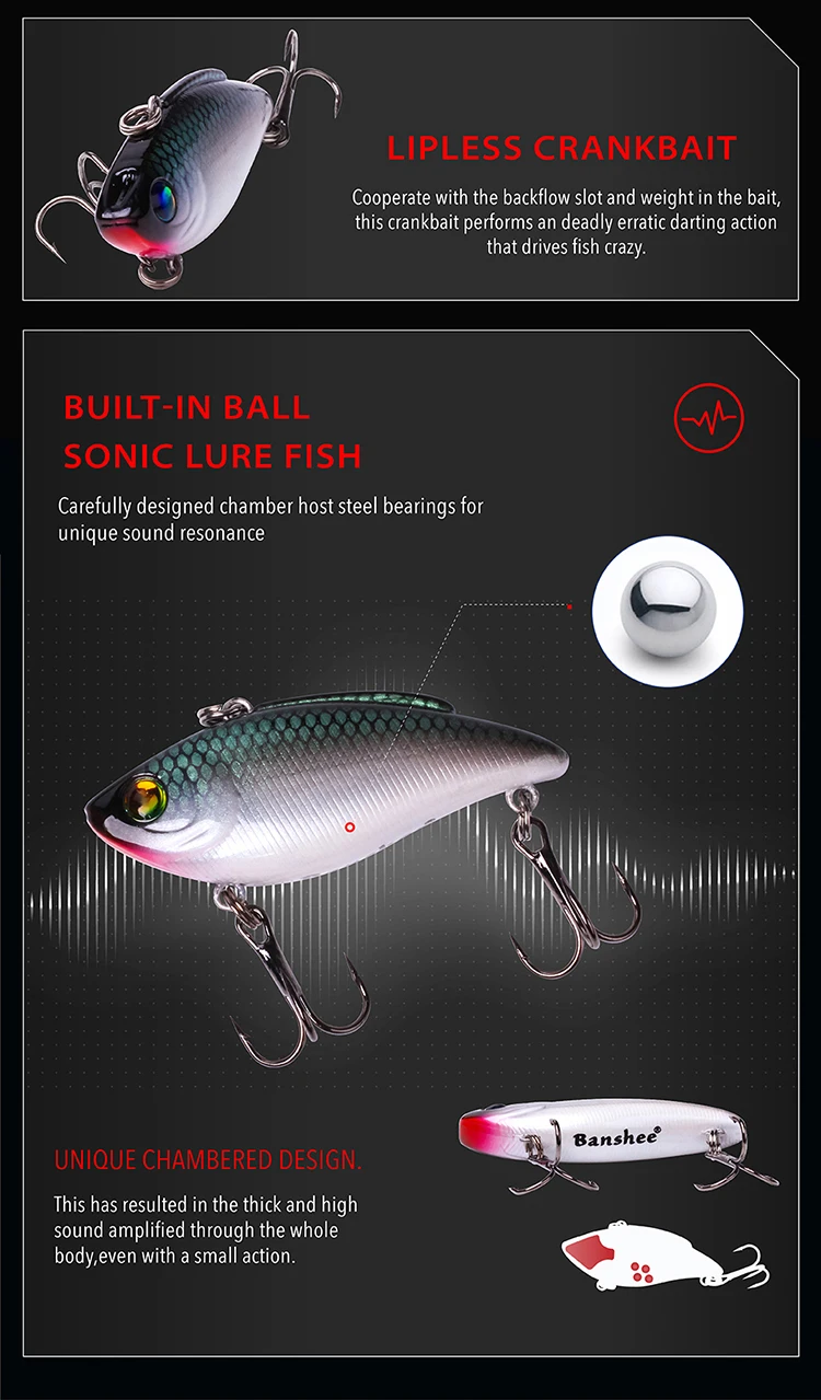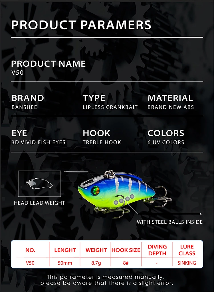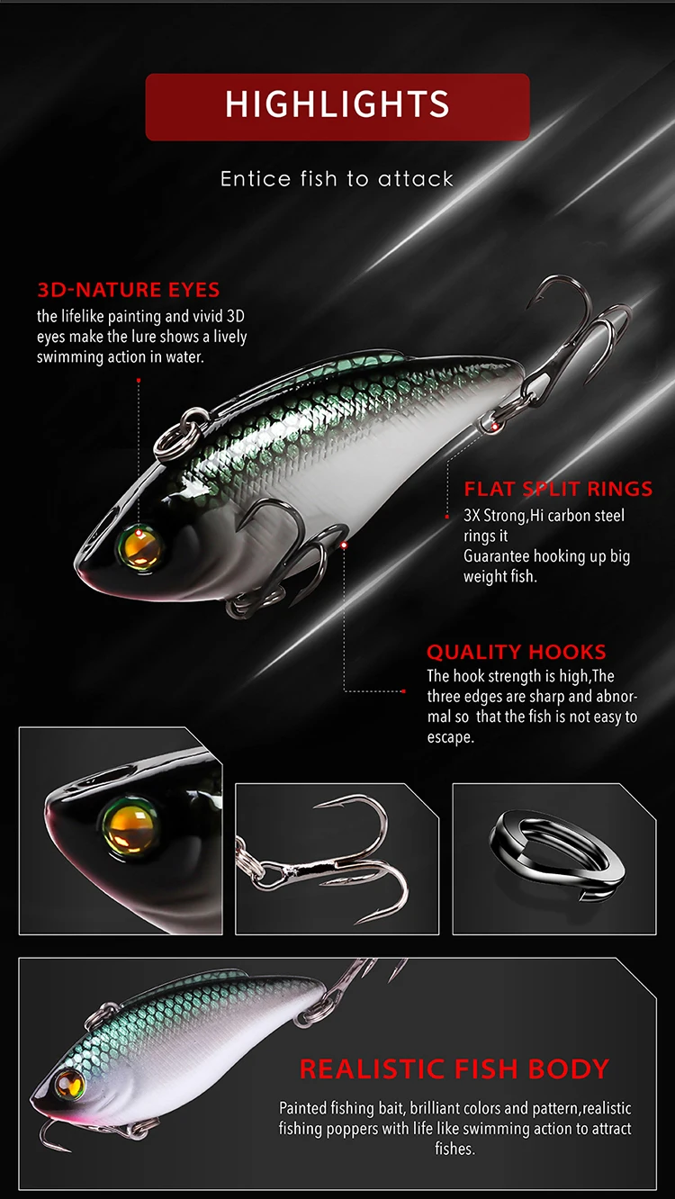 El wobbler VIB de 50mm está diseñado para ser de un tamaño efectivo para atraer varias especies de peces, ofreciendo un nado submarino realista.