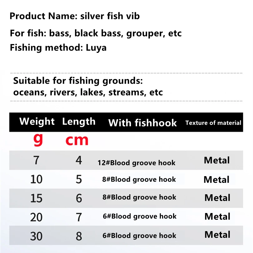 VIB lentejuela larga, hoja de tiro largo, cebo falso biónico, Luz de Mar, tanque de sangre, doble gancho giratorio, lentejuelas de ruido, 7g, 10g, 15g, 20g, 30g