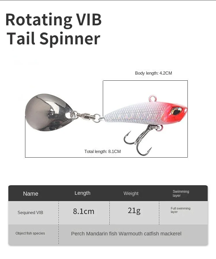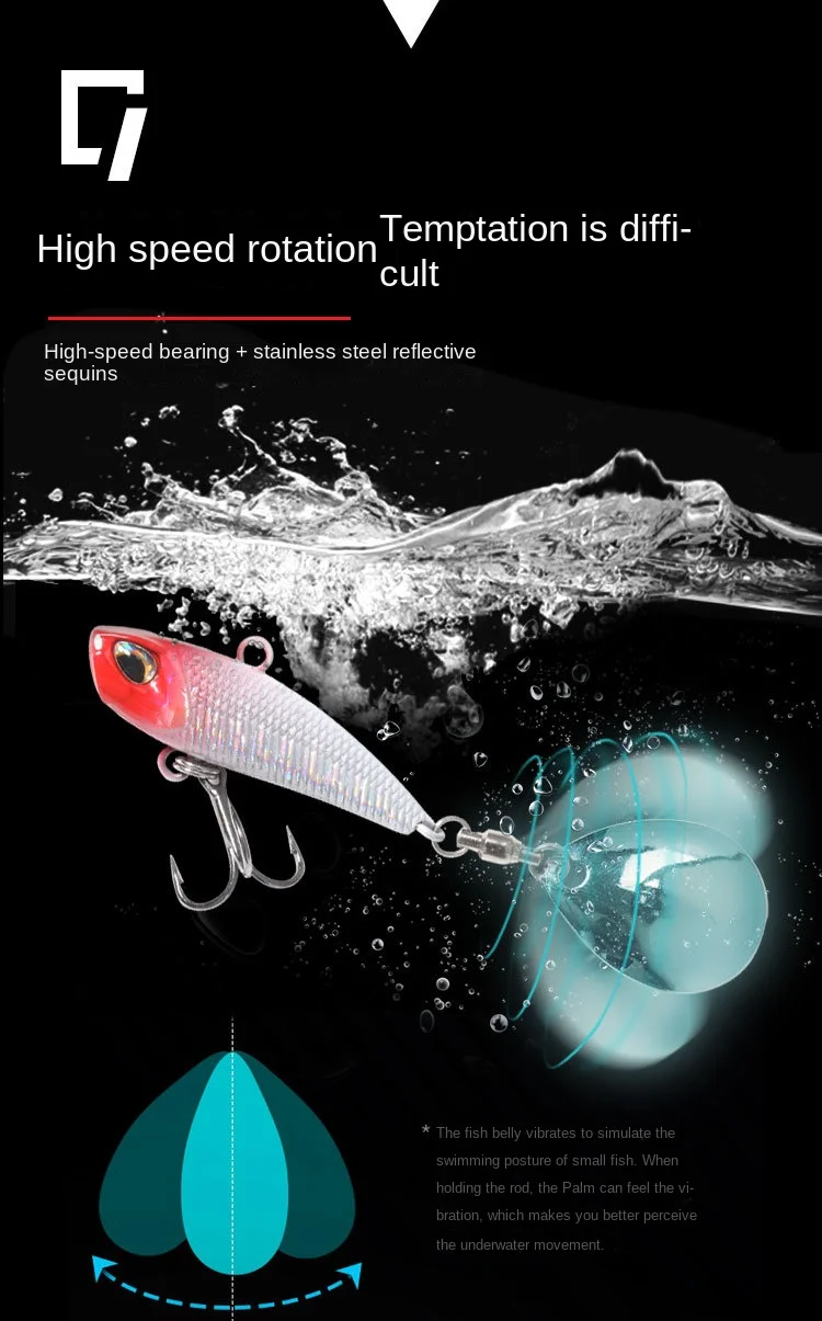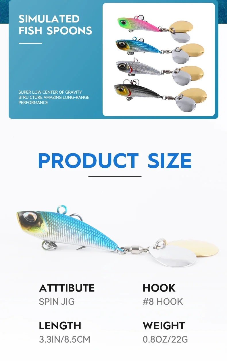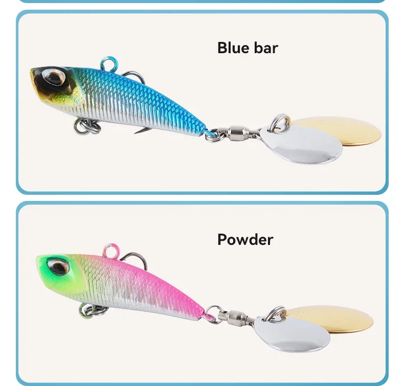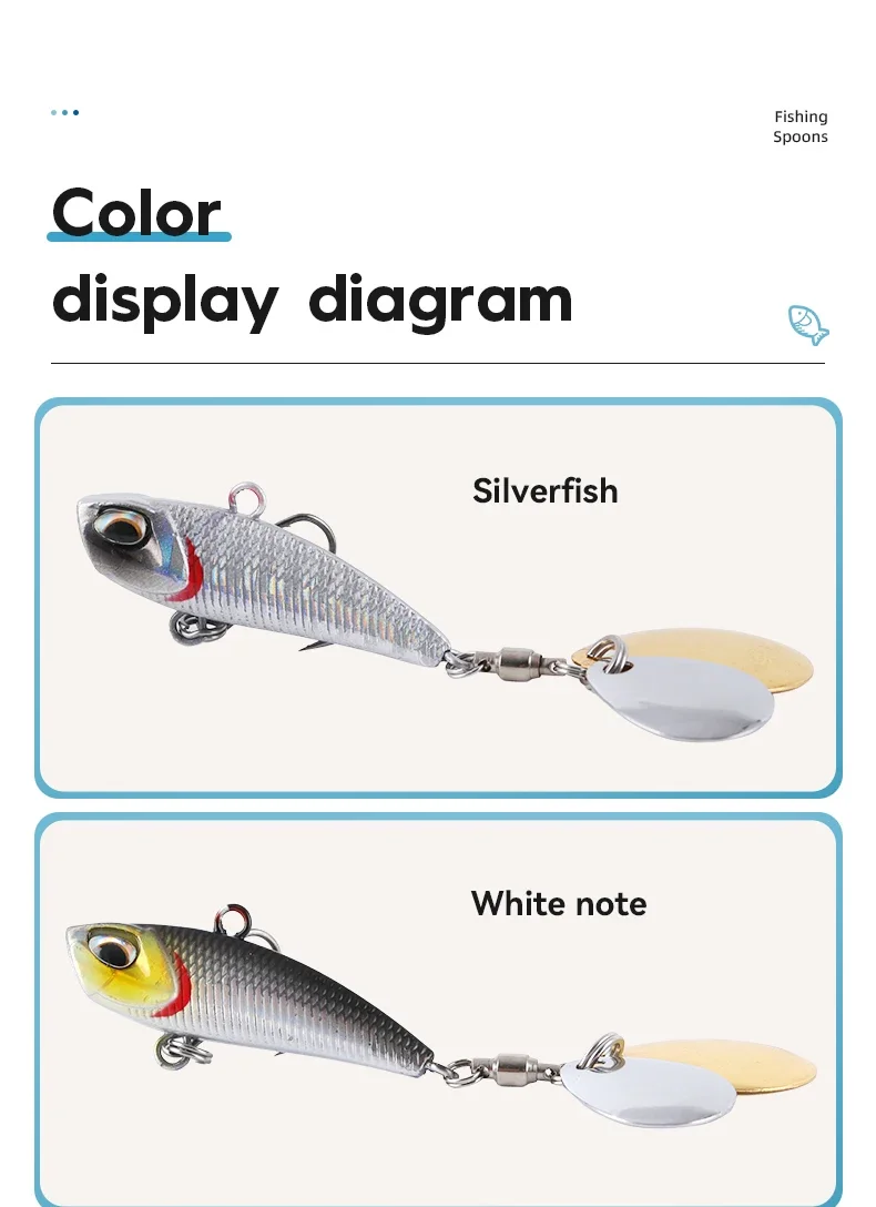 VIB Metal Spinner Wobbler Jig-señuelo de Pesca de invierno, capa holopótica, cebo de lentejuelas giratorias con vibración para depredador, Lucio, lubina, Pesca