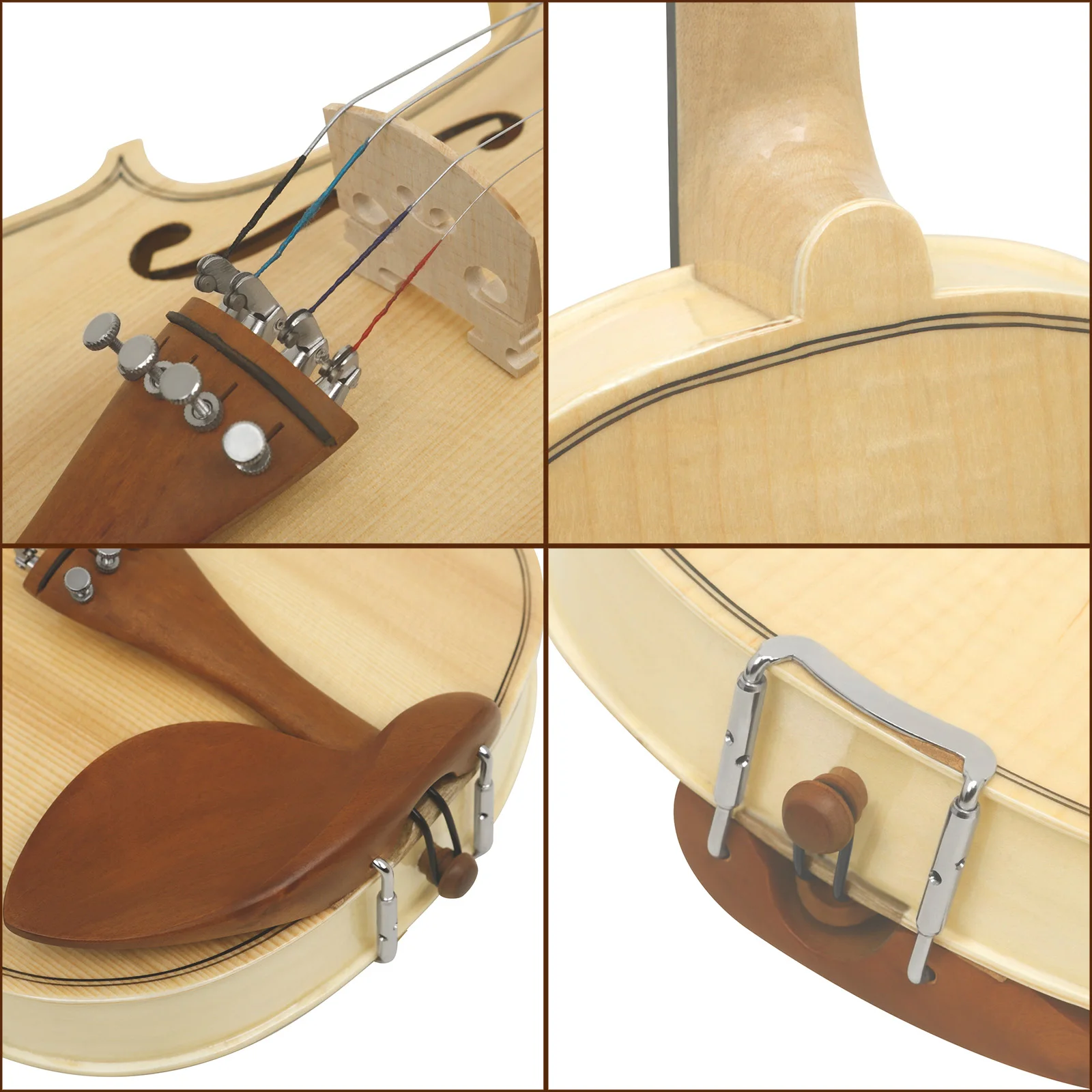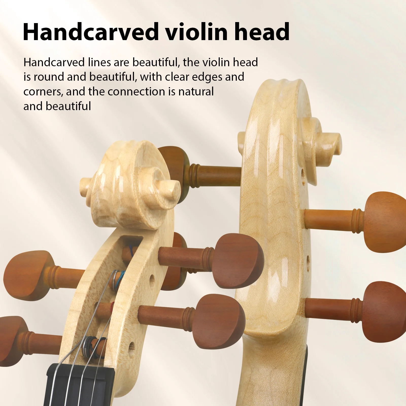 La sensación suave y cómoda del diapasón del violín, junto con sus precisas clavijas de afinación, garantiza que pueda producir hermosas melodías sin esfuerzo.
