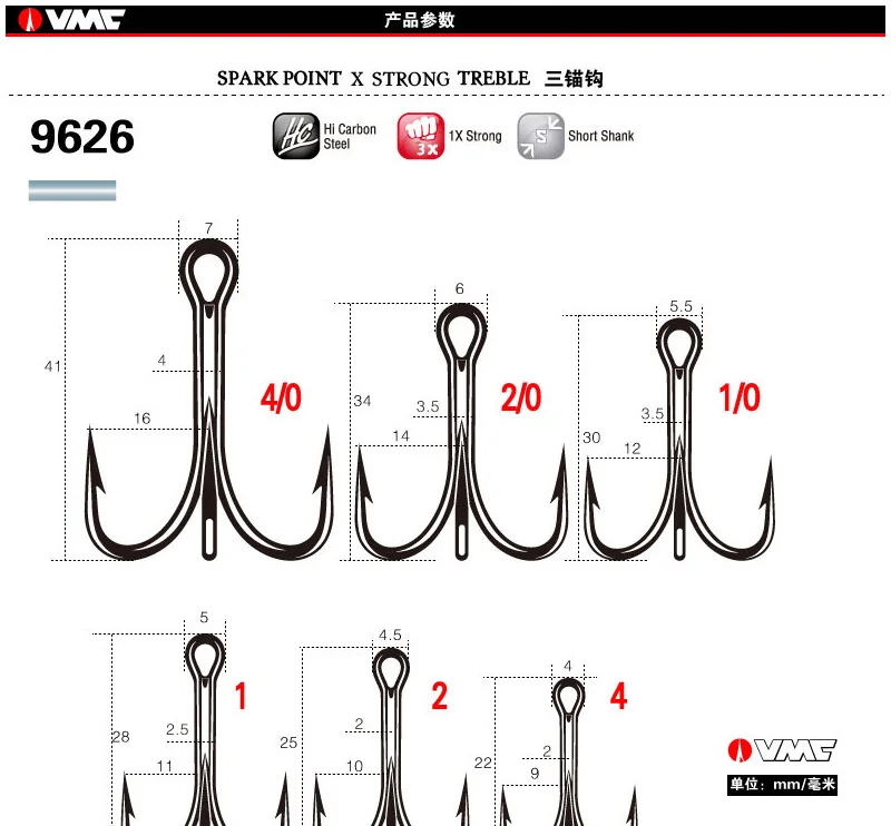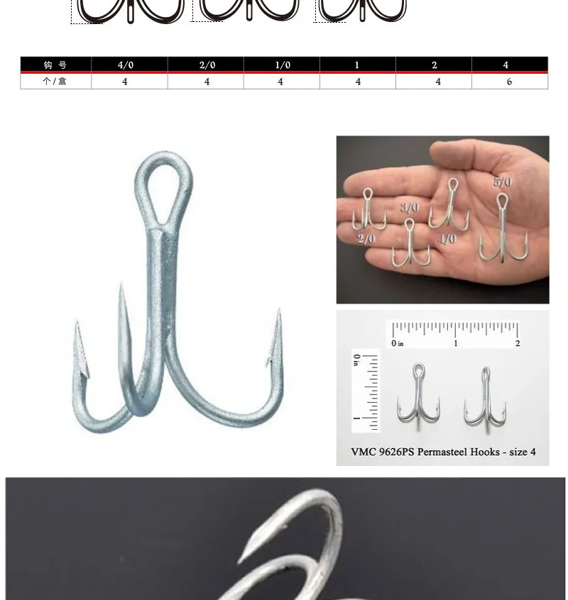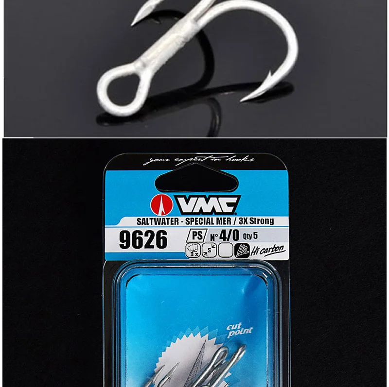 VMC-anzuelo de pesca francés, gancho de tres anclas, subgancho de carretera con púa, 9626 Original