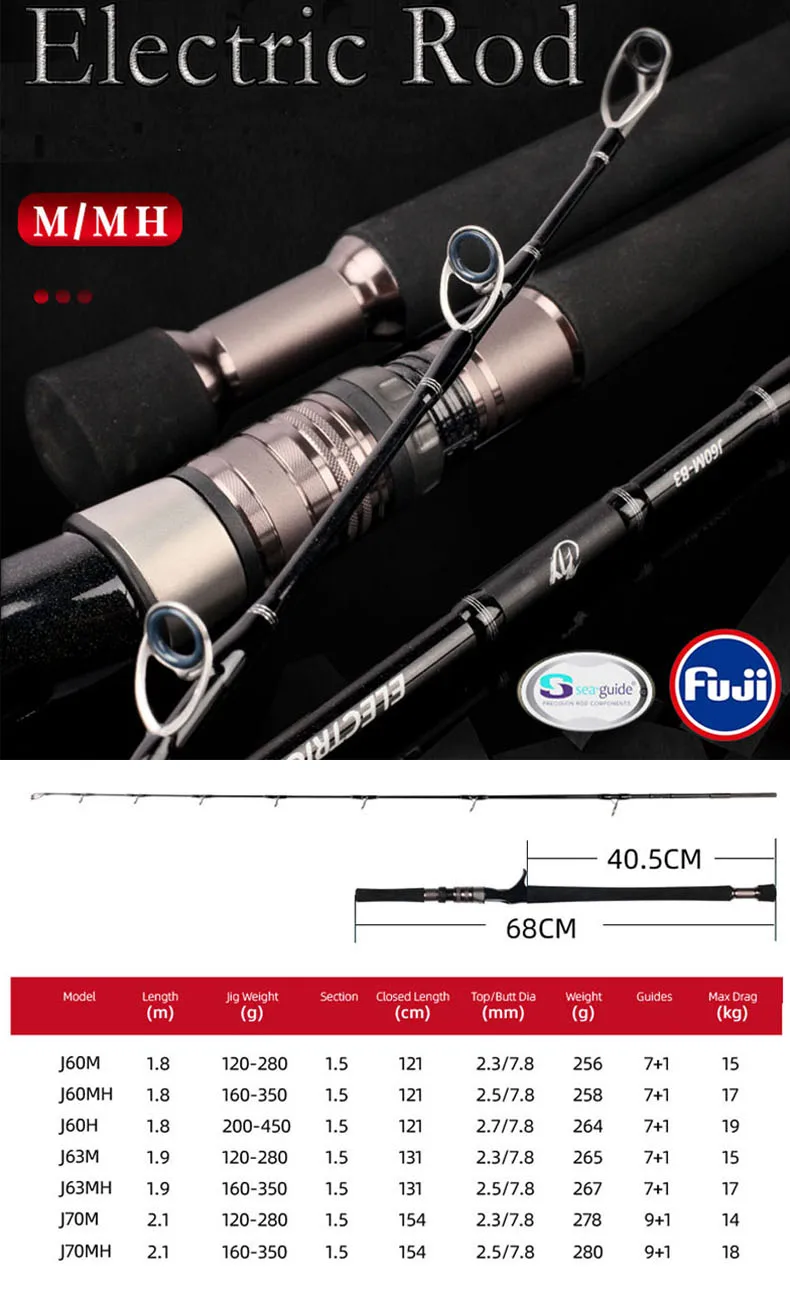 VOLIN, nueva caña de pescar eléctrica de Jigging lento, 1,8 m, 1,9 m, M/H/MH, caña de pescar en barco de carbono para caña de pescar en el mar, caña de pescar en barco