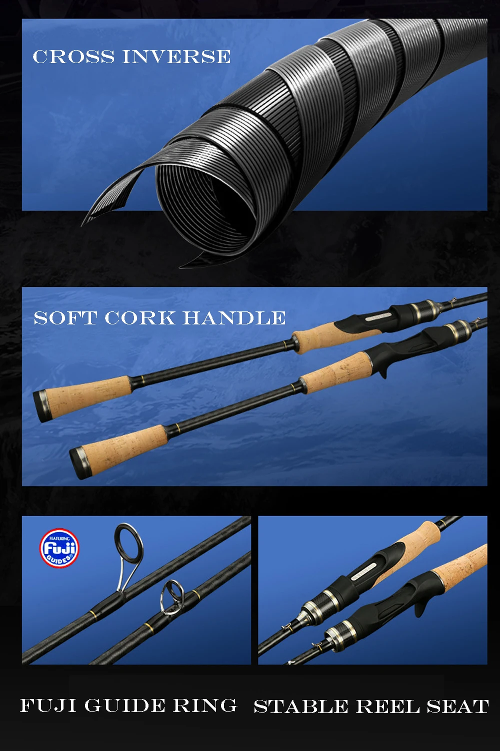 VOLIN NEW1.98m 2,1 m 2,4 m caña de pescar FUJI Baitcasting cinta cruzada caña giratoria mango de corcho suave 7-28g M/MH varilla ligera