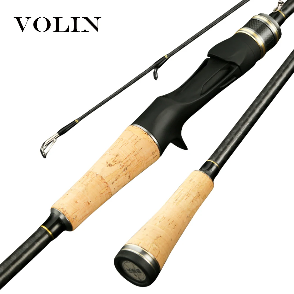 VOLIN NEW1.98m 2,1 m 2,4 m caña de pescar FUJI Baitcasting cinta cruzada caña giratoria mango de corcho suave 7-28g M/MH varilla ligera