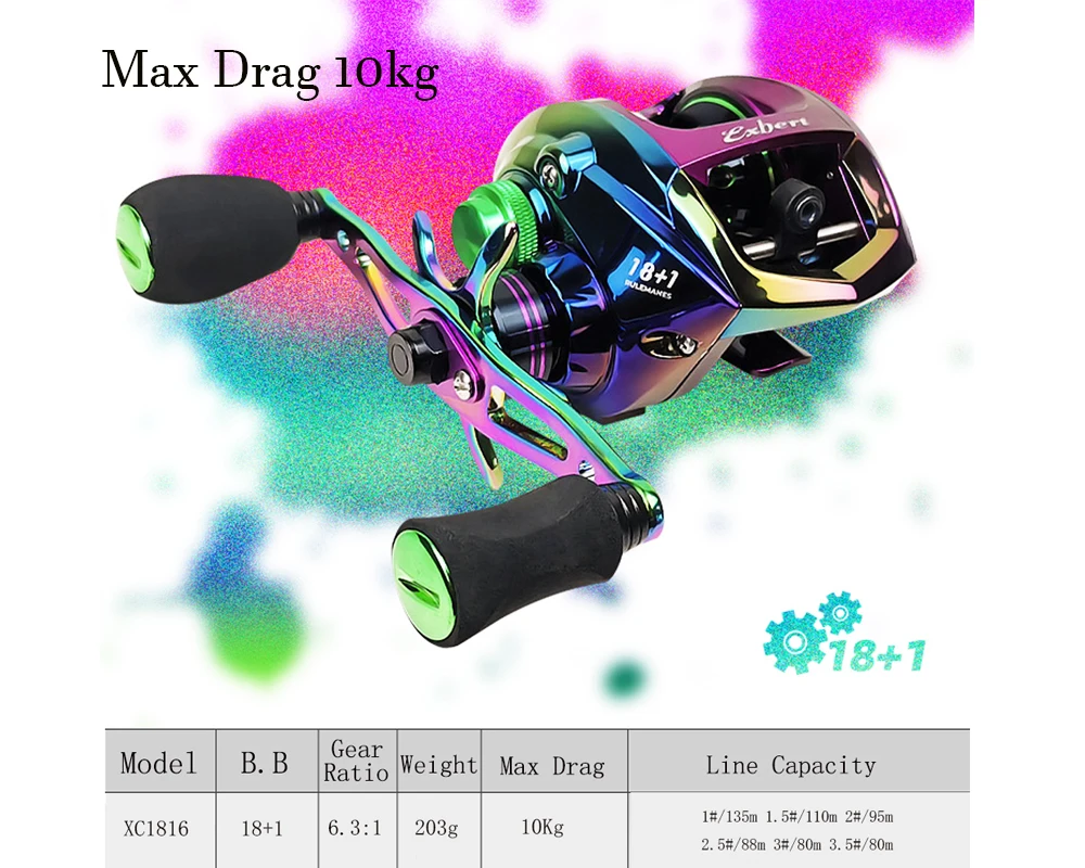 Carrete de pesca de cebo Volin, sistema de freno magnético, colorido carrete de fundición Universal de galvanoplastia 18 + 1 BB 6,3: 1, arrastre máximo 10kg.
