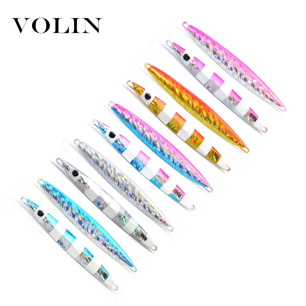 Señuelo VOLIN de Metal de Jigging lento 1 ud. 80g 100g 120g 150g señuelo de pesca de Metal de agua salada cebo Artificial lanzamiento aparejos de pesca
