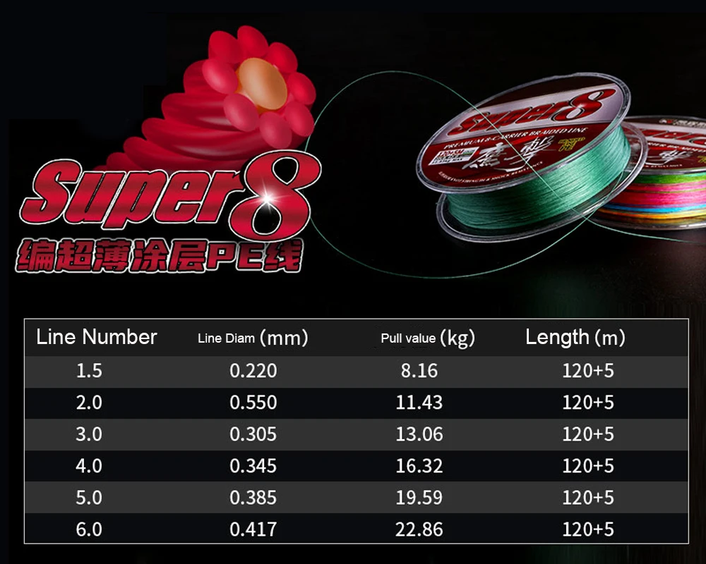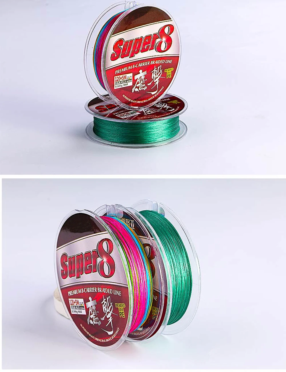 VOLIN-línea de pesca trenzada de 8 tejidos, 120m + 5, 8 hebras, multifilamento, PE, 8, 11, 13, 16, 19, 22kg