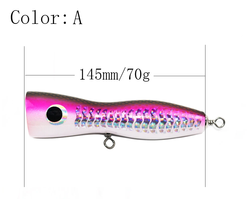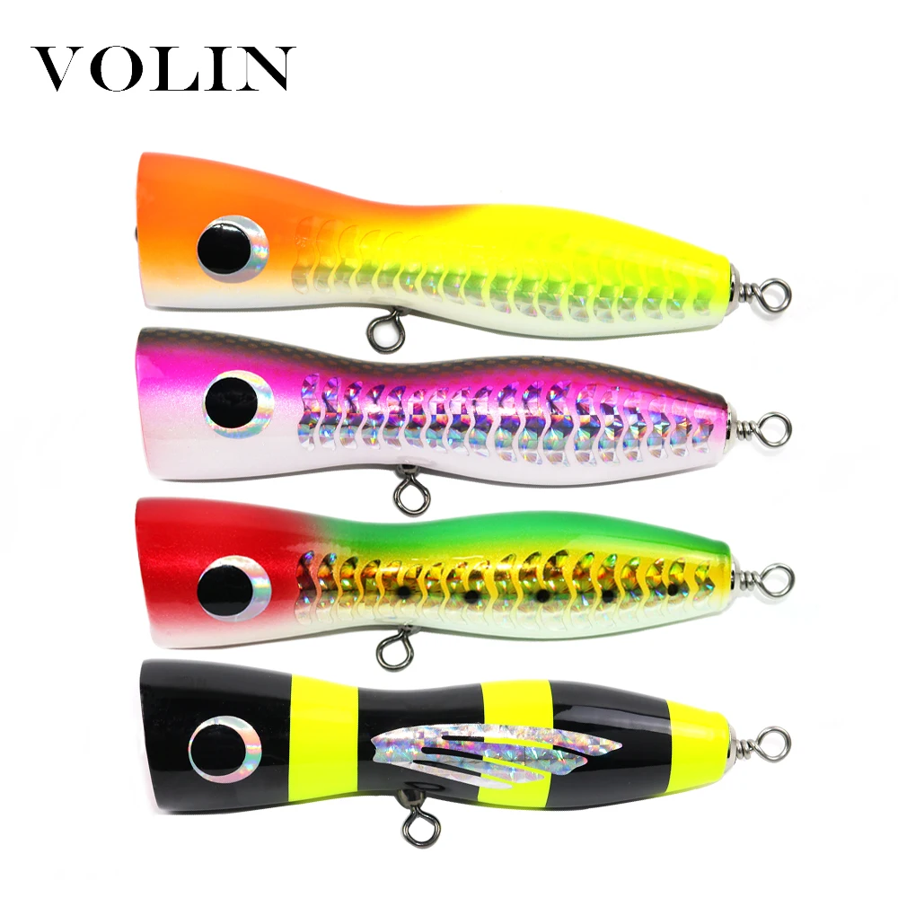 VOLIN, 1 pieza, 145mm, 70g, cebo de pesca duro, señuelo de madera, cebo de pesca de agua salada, señuelo de extremo de madera, de mar profundo Popper señuelo, cebo Artificial