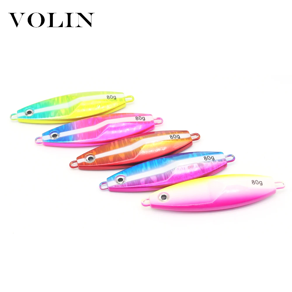 VOLIN, nuevo modelo, 1 pieza, señuelo de pesca Jigging lento, 80g, 100g, señuelo de pesca de Metal de agua salada, cebo Artificial, aparejos de pesca fundidos