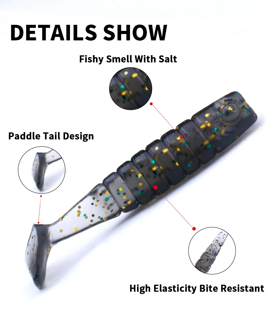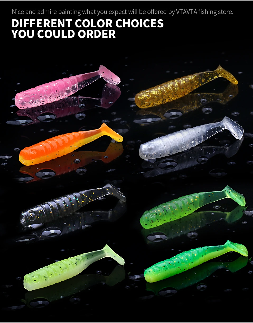 VTAVTA-Señuelos de pesca de silicona, cebo suave de 40mm, cebo artificial de PVC, aparejos de lucio y lubina, Wobbler, cola de paleta, sábalo