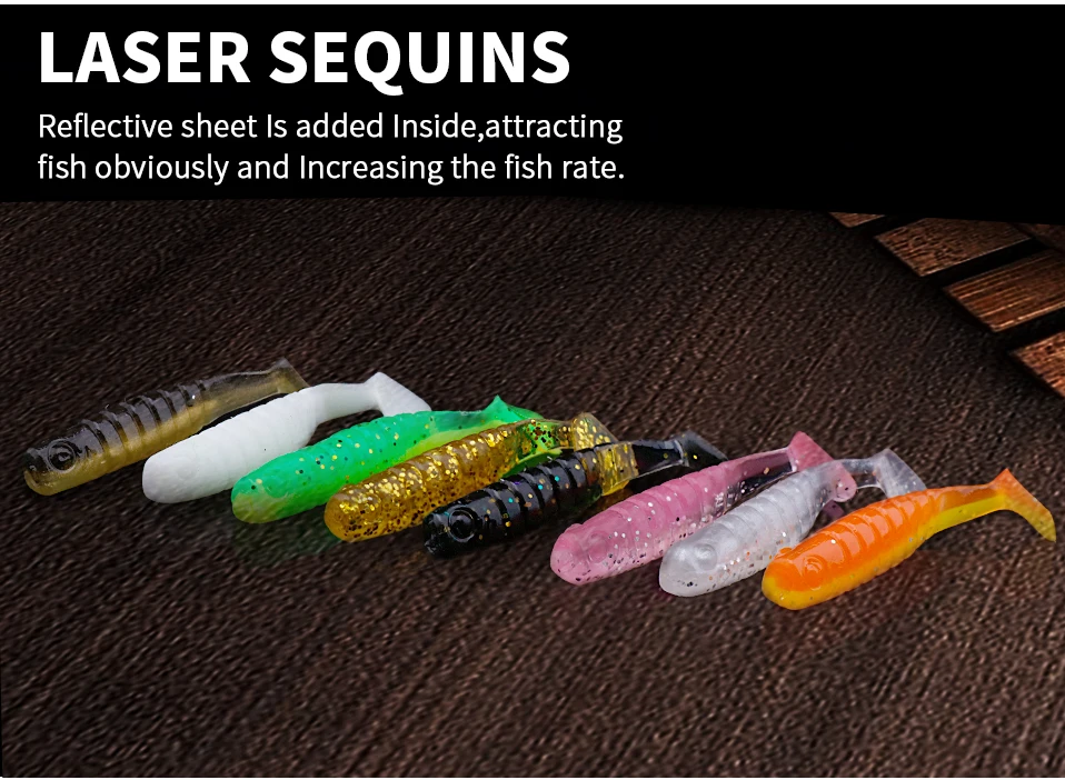 5) Colores probados con brillos Coloridos:Disponible en una variedad de colores para la captura de peces, le ayuda a combinar la escotilla en cualquier cuerpo de agua, ideal para cualquier condición de pesca que necesite una acción mejorada. Equipado con brillos cuidadosamente seleccionados para adaptarse al señuelo, refleja la luz desde todas las direcciones para atraer mejor a los peces y provocar más golpes.