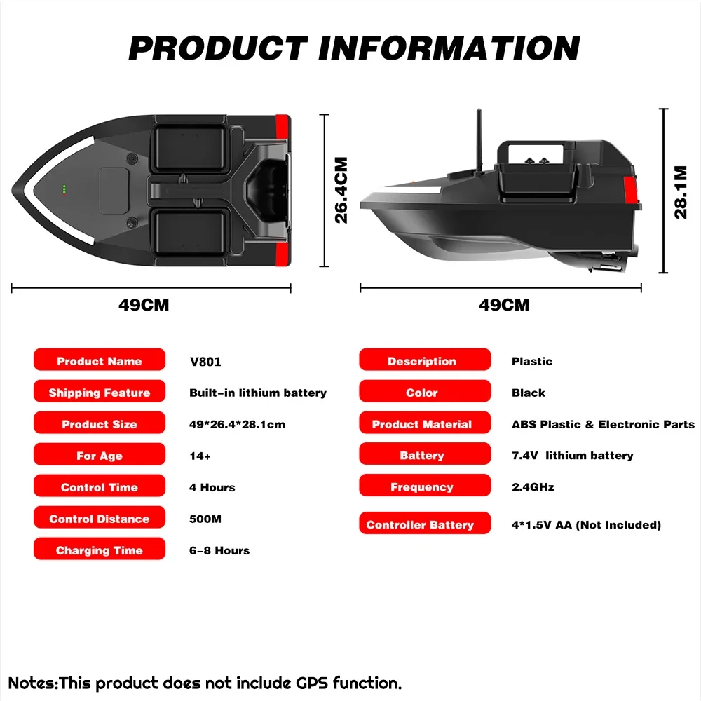Tenga en cuenta: este barco de pesca no puede usar dos baterías al mismo tiempo. Si compra un juego de dos baterías, la otra batería es una batería de repuesto.