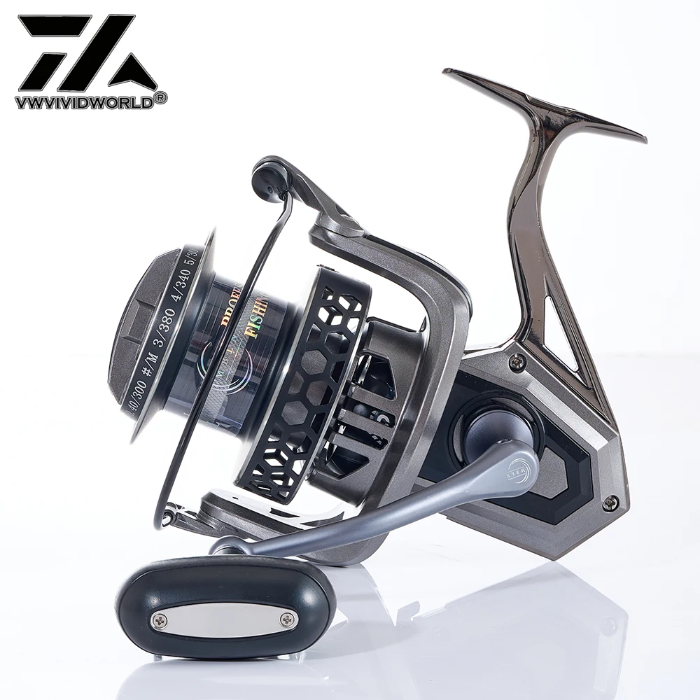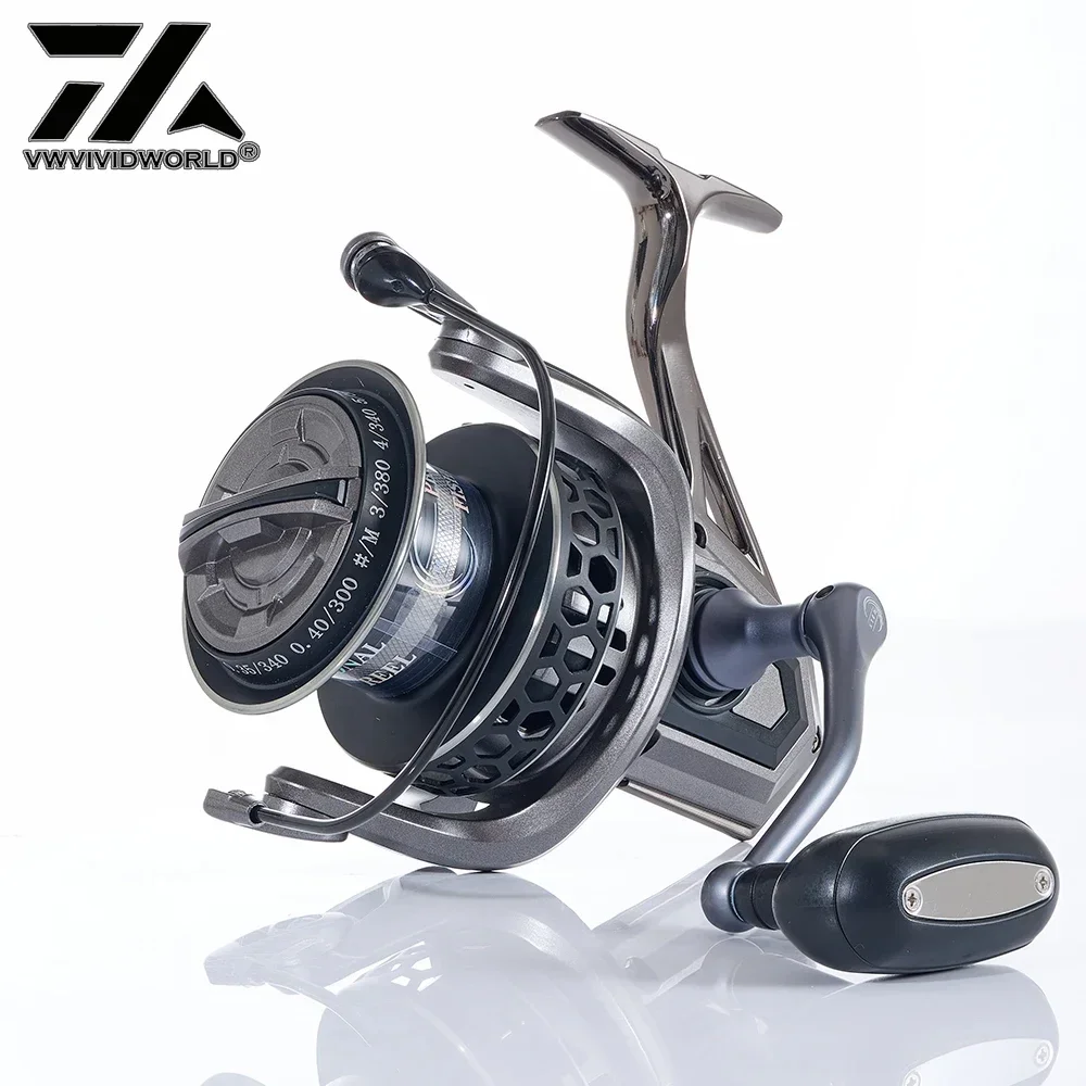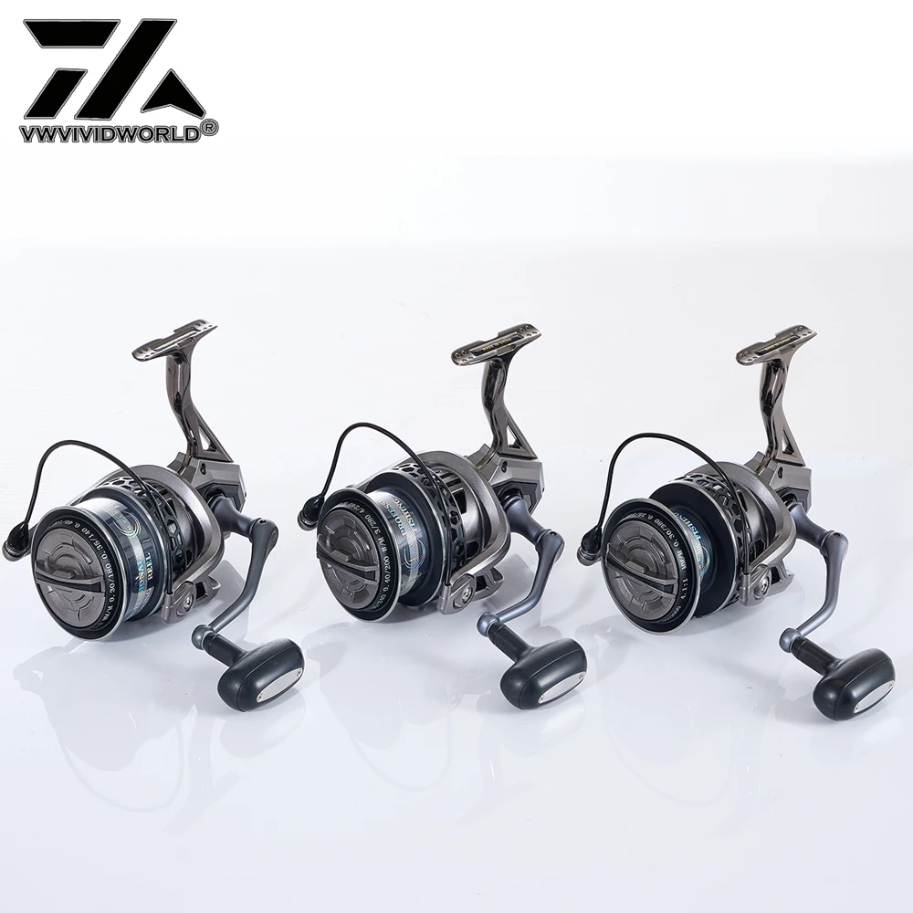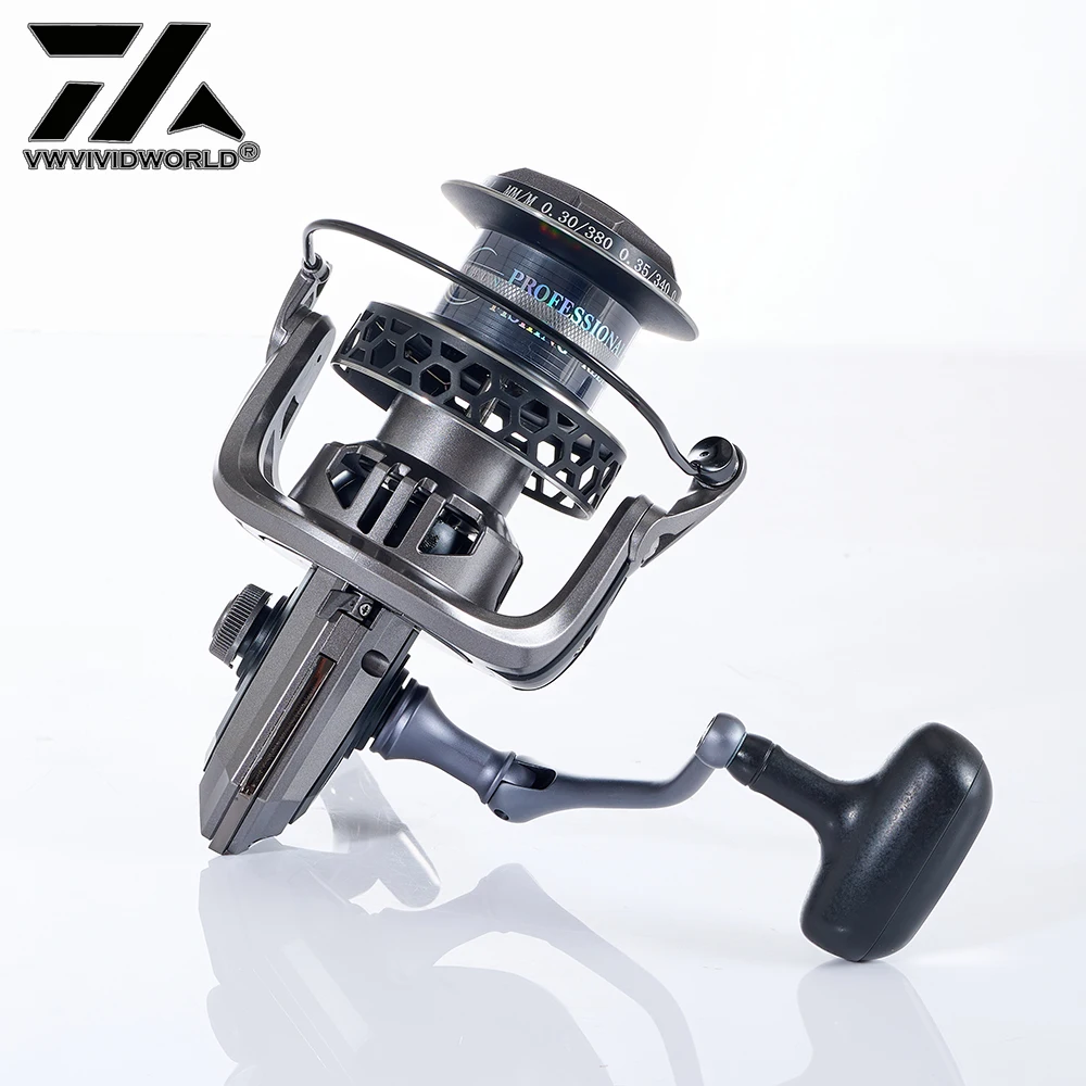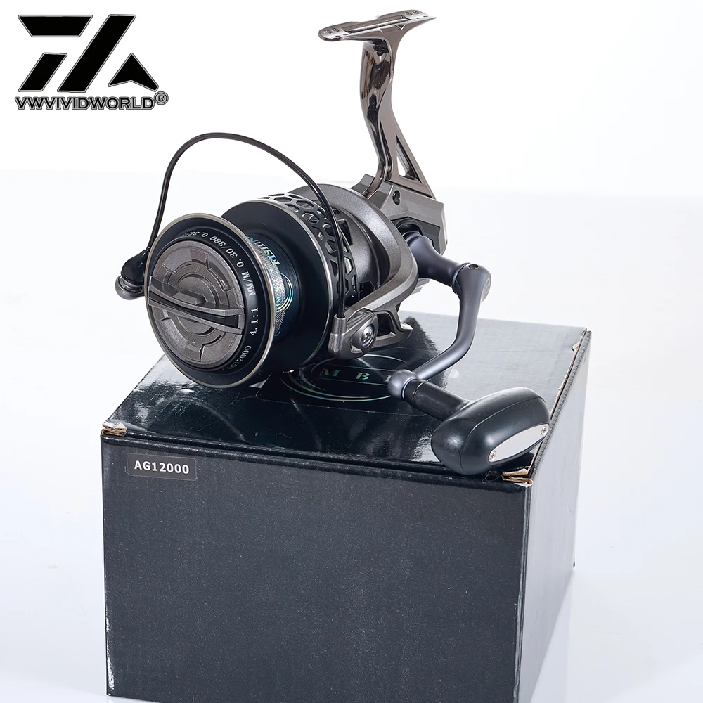 VWVIVIDWORLD, arrastre 8000-12000,15KG, carrete de pesca de agua salada, carrete de aleación, rodamiento de acero, engranaje de aleación, brazo de Metal, carrete giratorio para barco de mar