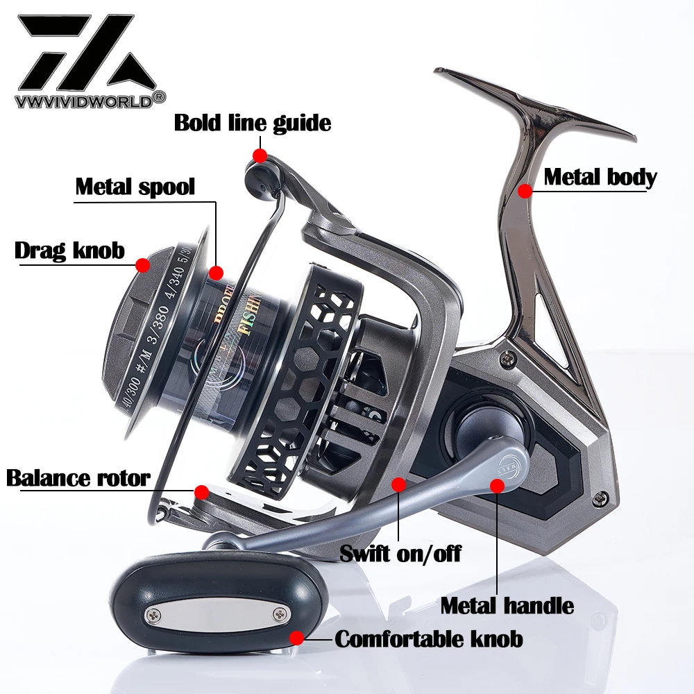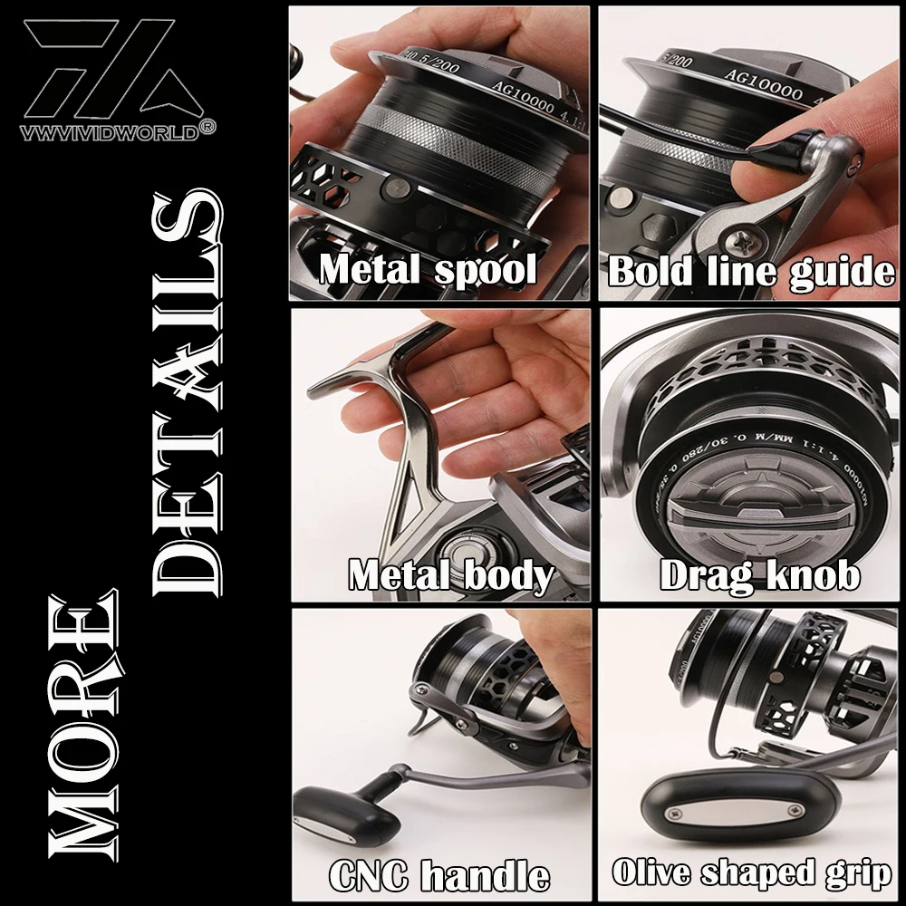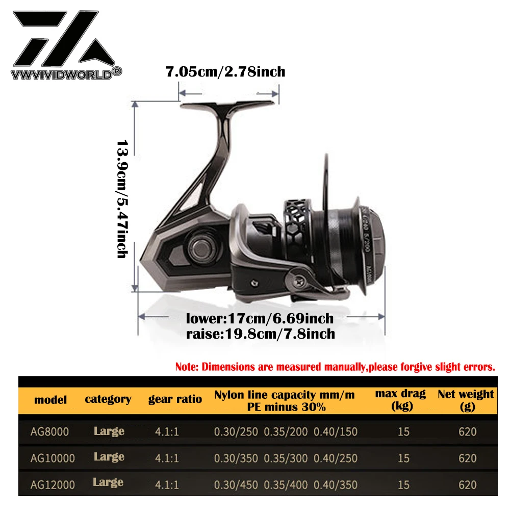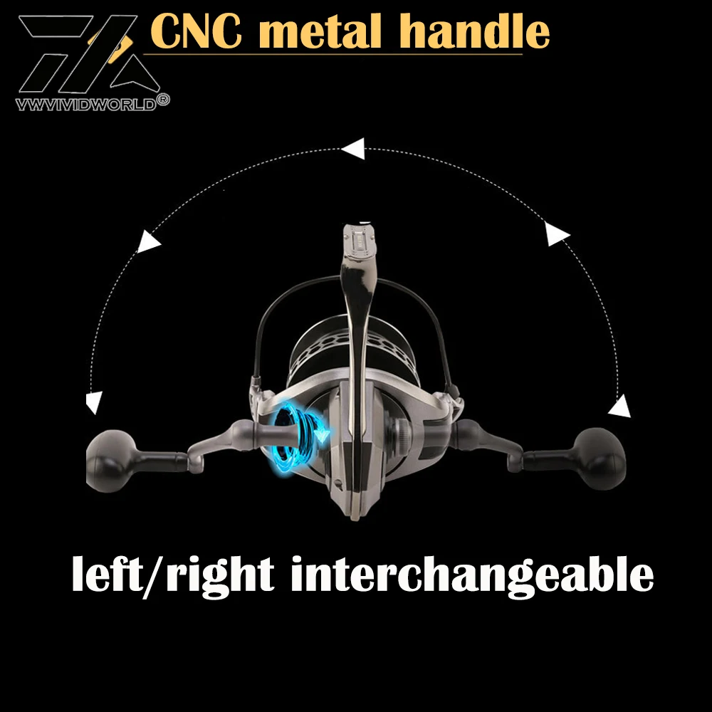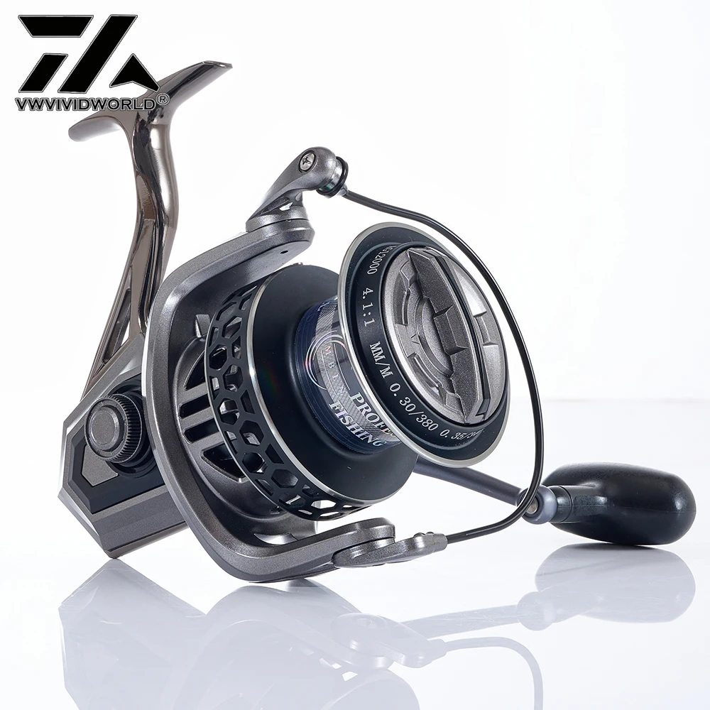 VWVIVIDWORLD, arrastre 8000-12000,15KG, carrete de pesca de agua salada, carrete de aleación, rodamiento de acero, engranaje de aleación, brazo de Metal, carrete giratorio para barco de mar