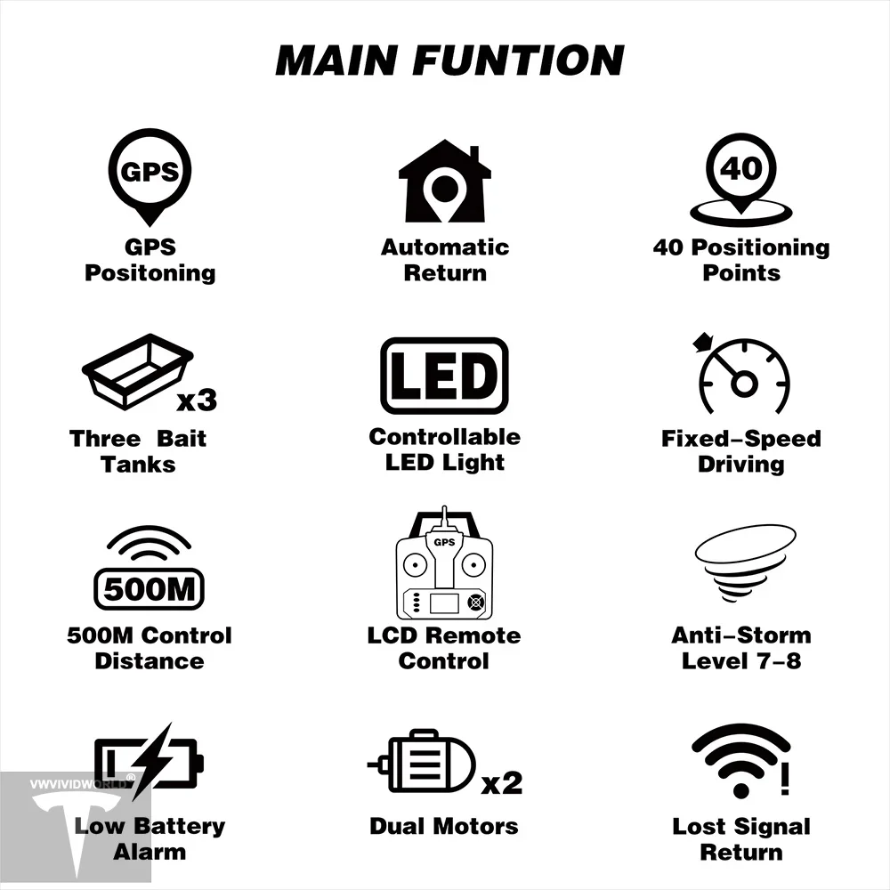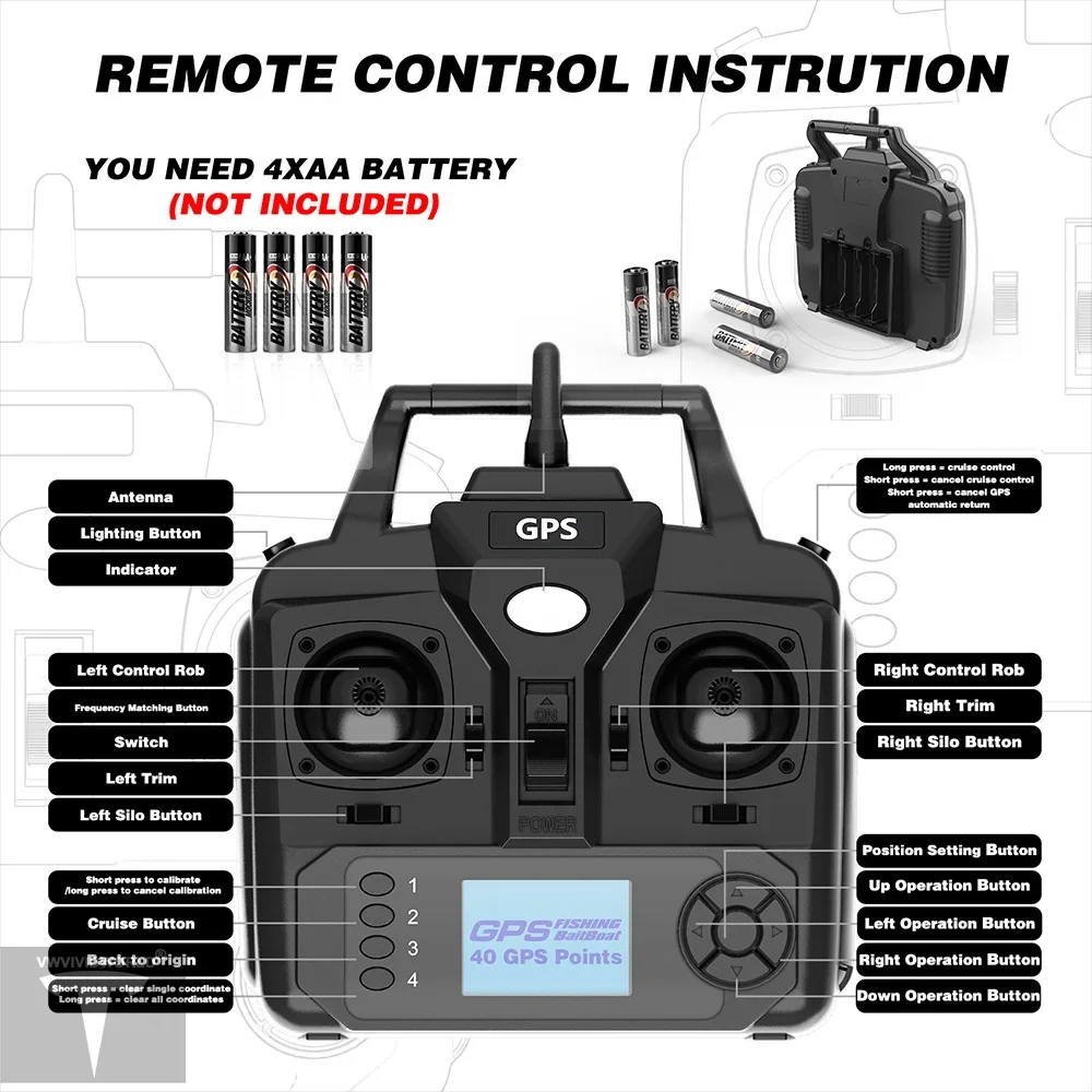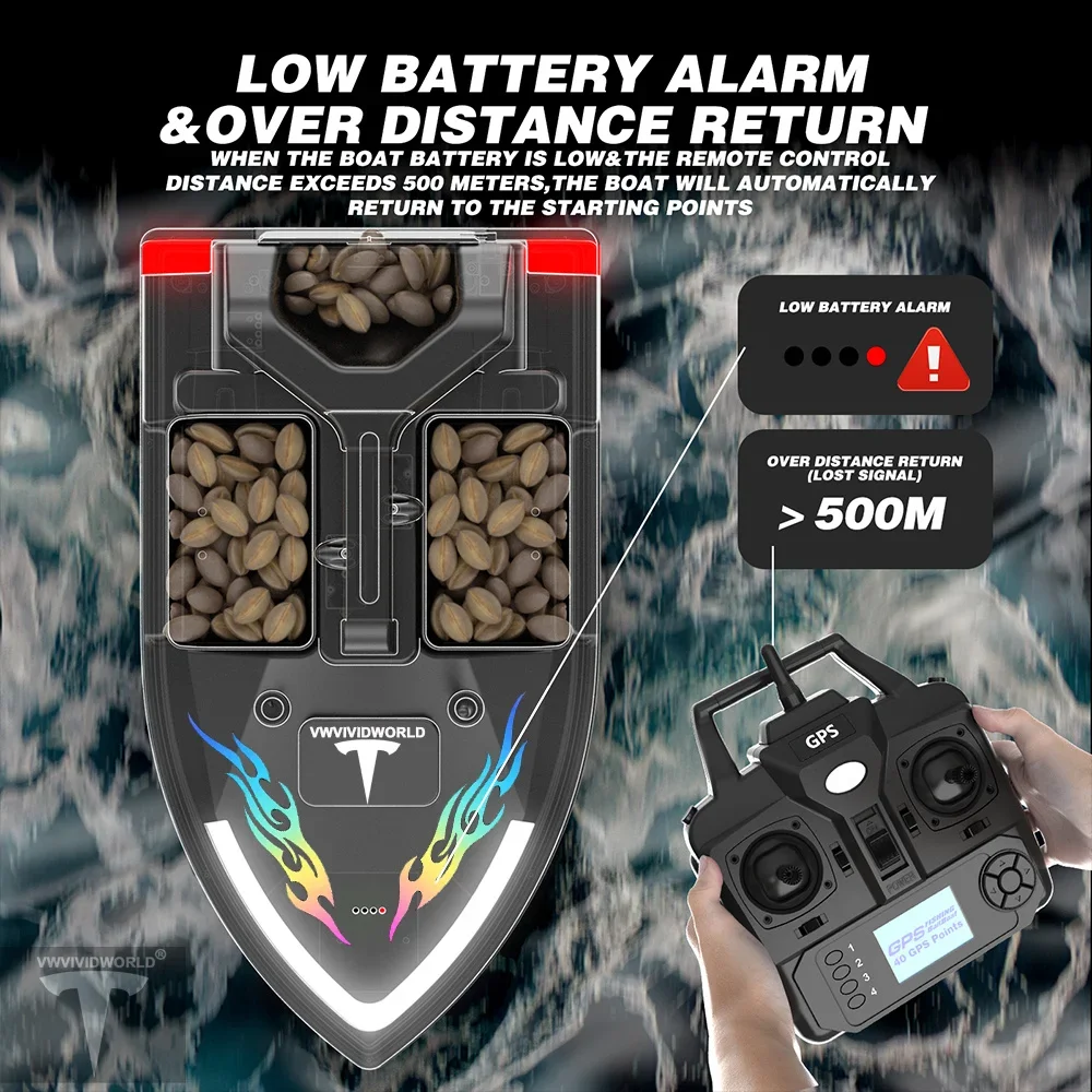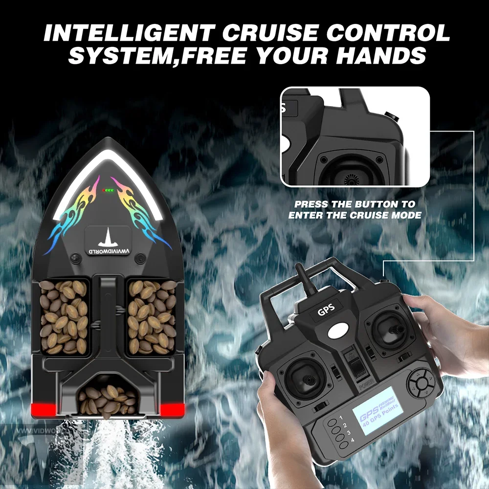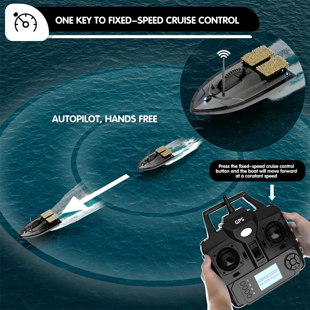 Con 40 puntos de posicionamiento de memoria, el barco puede navegar automáticamente presionando un botón, liberando las manos para lograr un lanzamiento de cebo de punto fijo y retorno automático.