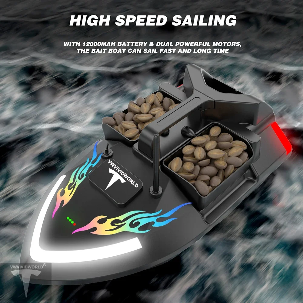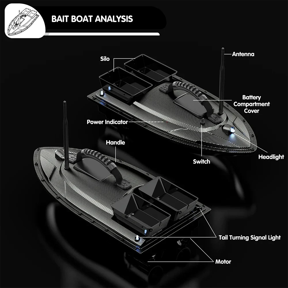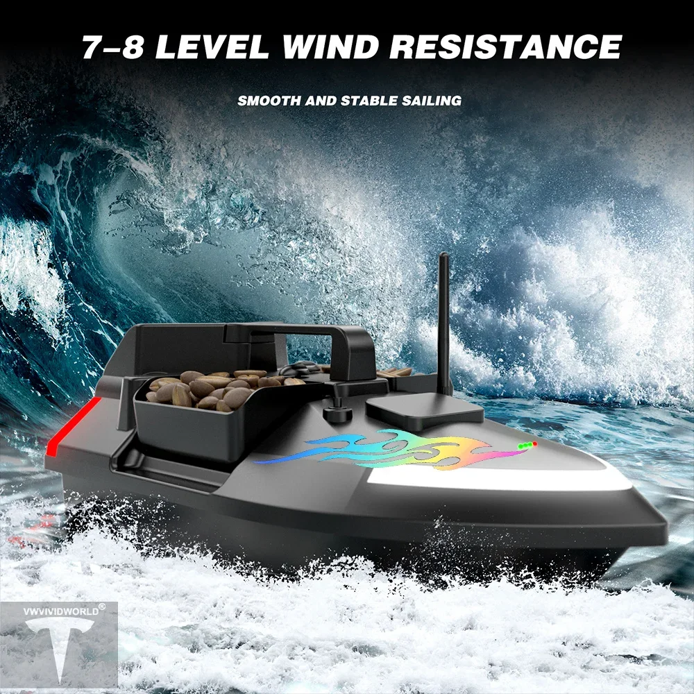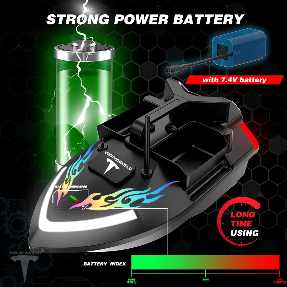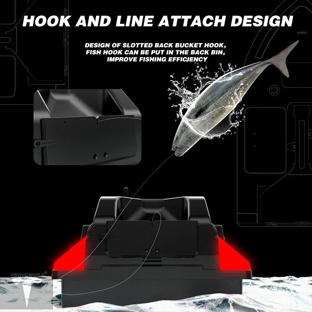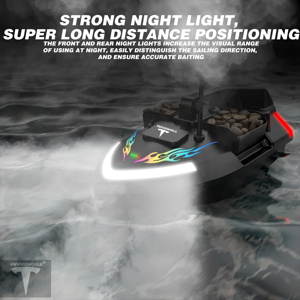 Luces delanteras y traseras de dos colores, mejoran el rango de visión de conducción nocturna, identifican fácilmente la dirección de navegación y aseguran un posicionamiento preciso del cebo