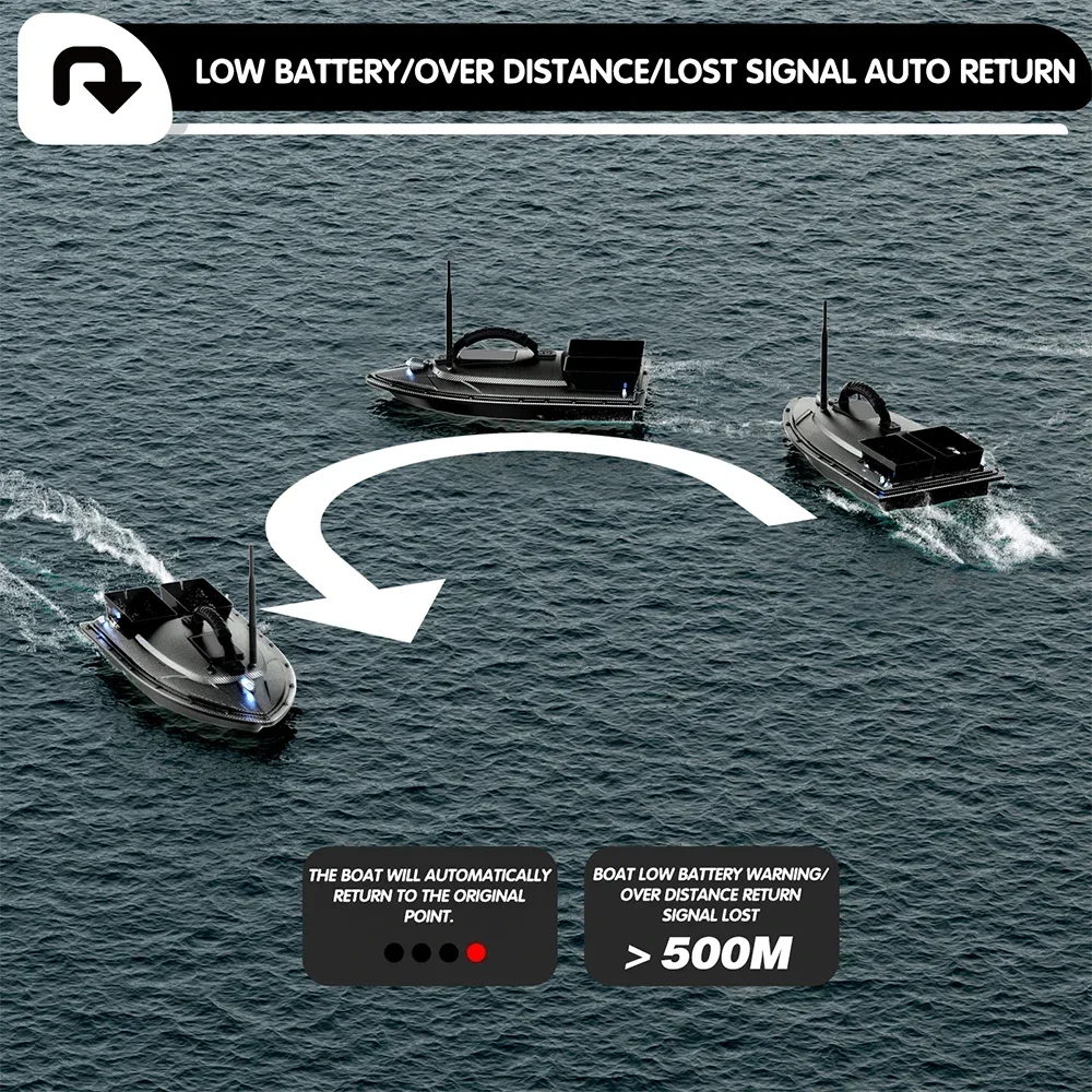 Cuando el barco tiene poca batería o la señal es pobre durante mucho tiempo, el barco regresará automáticamente