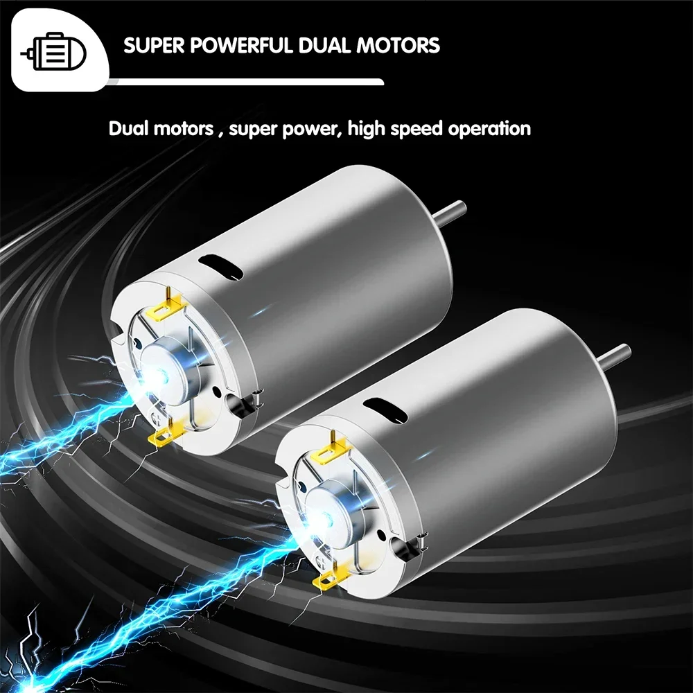 El barco adopta un potente diseño de doble motor para proporcionar suficiente potencia, equipado con una hélice de tres palas para aumentar el empuje y el rango repelente al agua en el agua para una mejor velocidad y experiencia de conducción