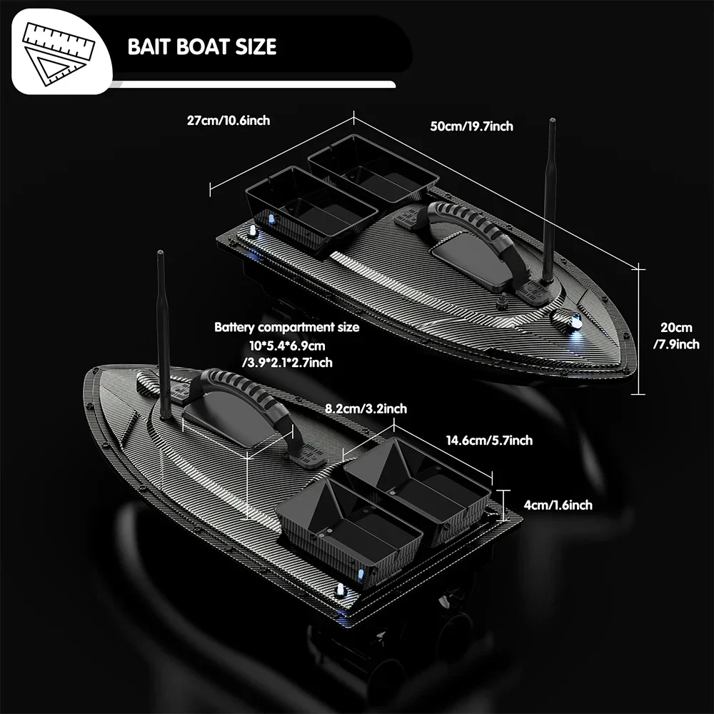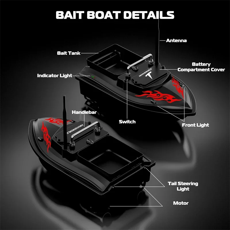 Nota: Este barco pesquero puede usar dos baterías al mismo tiempo.Debido al límite de tamaño del compartimento de la batería, se pueden usar un máximo de 18000mAh y una batería de 12000mAh al mismo tiempo.Descripción del producto