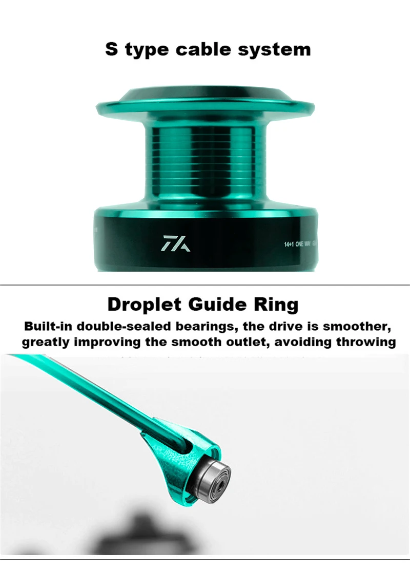 + Carrete giratorio resistente a la corrosión suave, potente. Mecanizado CNC, con engranaje de alta resistencia. Excelente sistema de oscilación lineal. Cuerpo ultrafino de diseño aerodinámico.