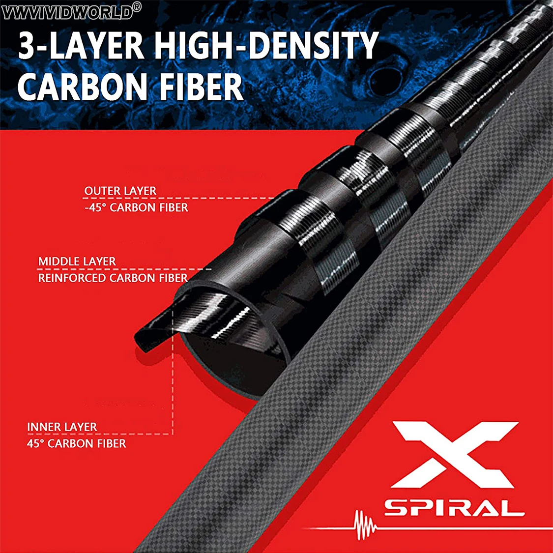 1. Varilla de fibra de carbono de alto contenido de 46T: liviana pero extremadamente resistente, que ofrece una durabilidad superior con juntas de sección reforzadas y un cabezal de malla resistente.