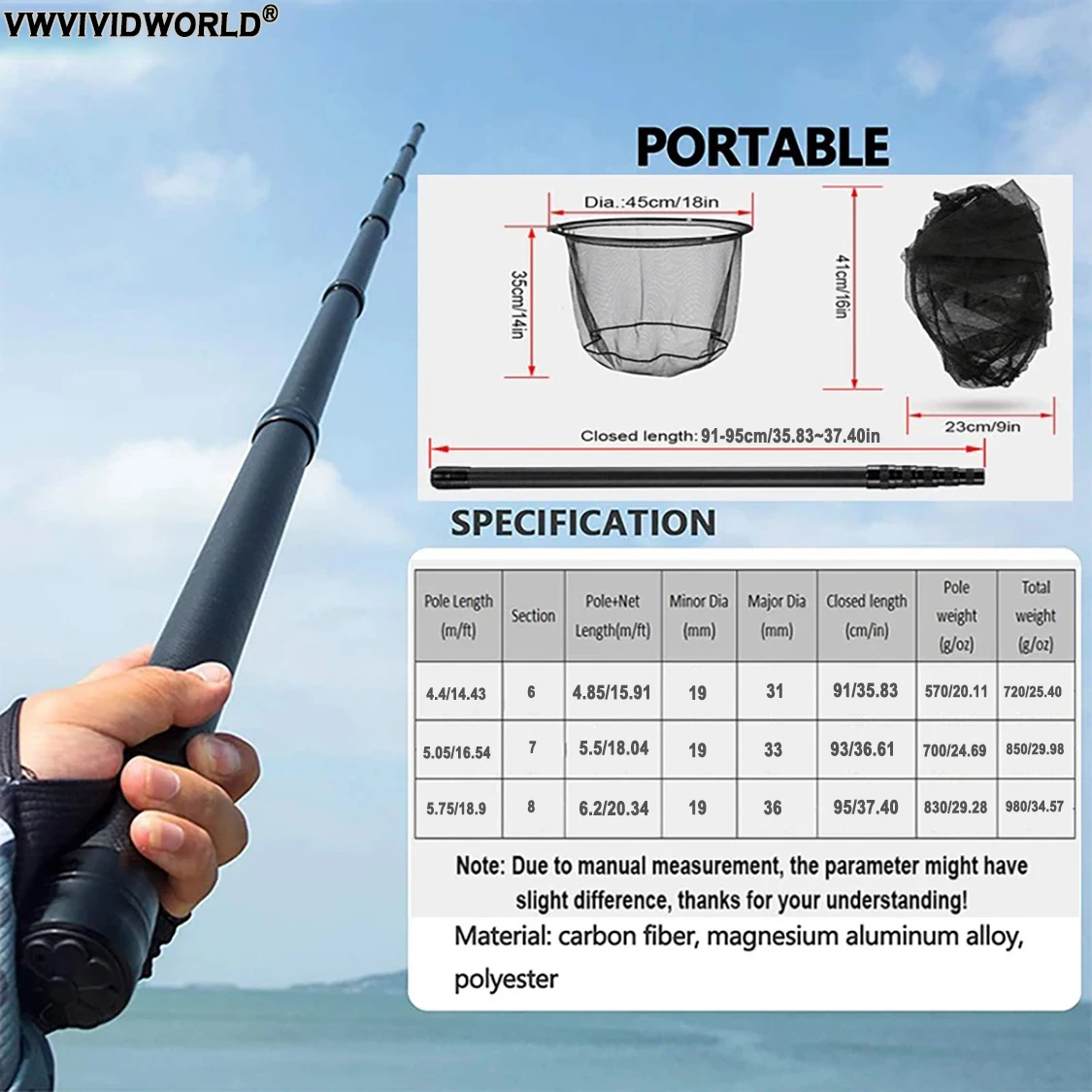 Nombre del producto: Red de pesca telescópica de fibra de carbono