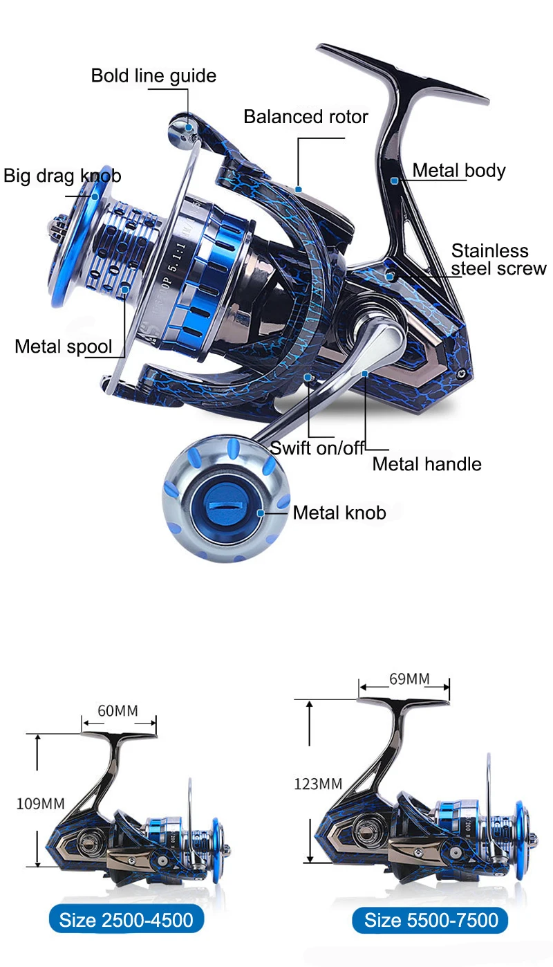Potencia máxima de arrastre de 6.21 kg, tirar de peces grandes no es un problema