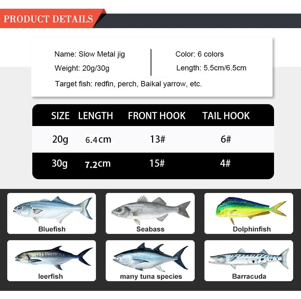 Señuelo de cuchara de plantilla de Metal fundido, cebo Artificial de 20G 30G, Señuelos de Pesca de Jigging lento Shore, aparejos de pesca de lubina súper duros