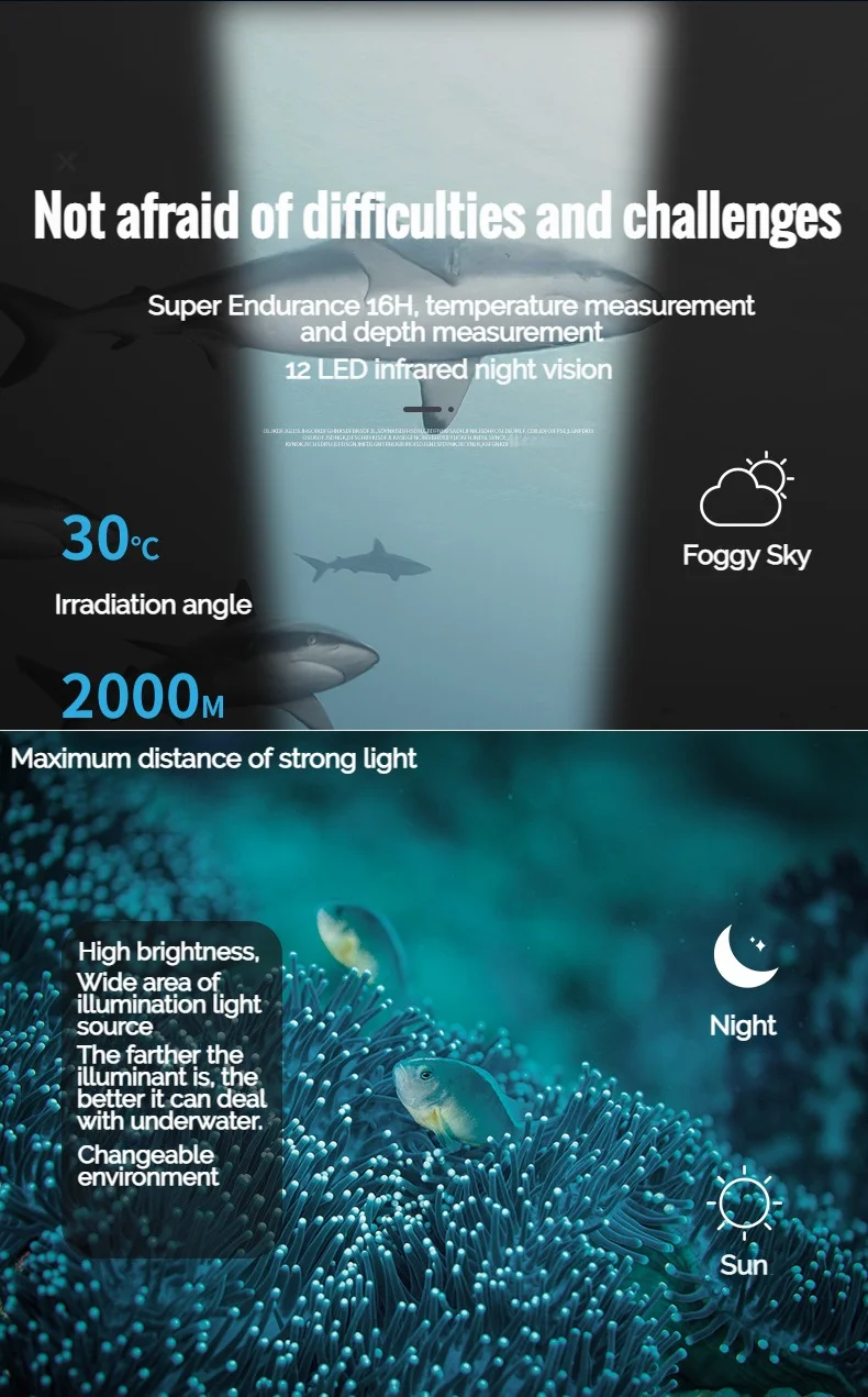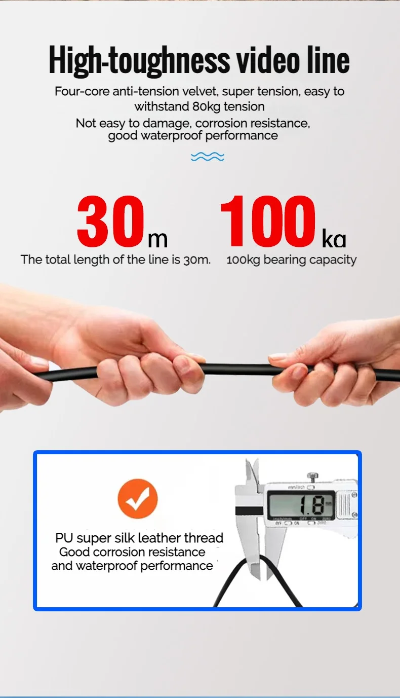 3. La Demostración en video se graba con una pantalla de 5,0 pulgadas y una cámara de penetración de agua fangosa de 30 metros.