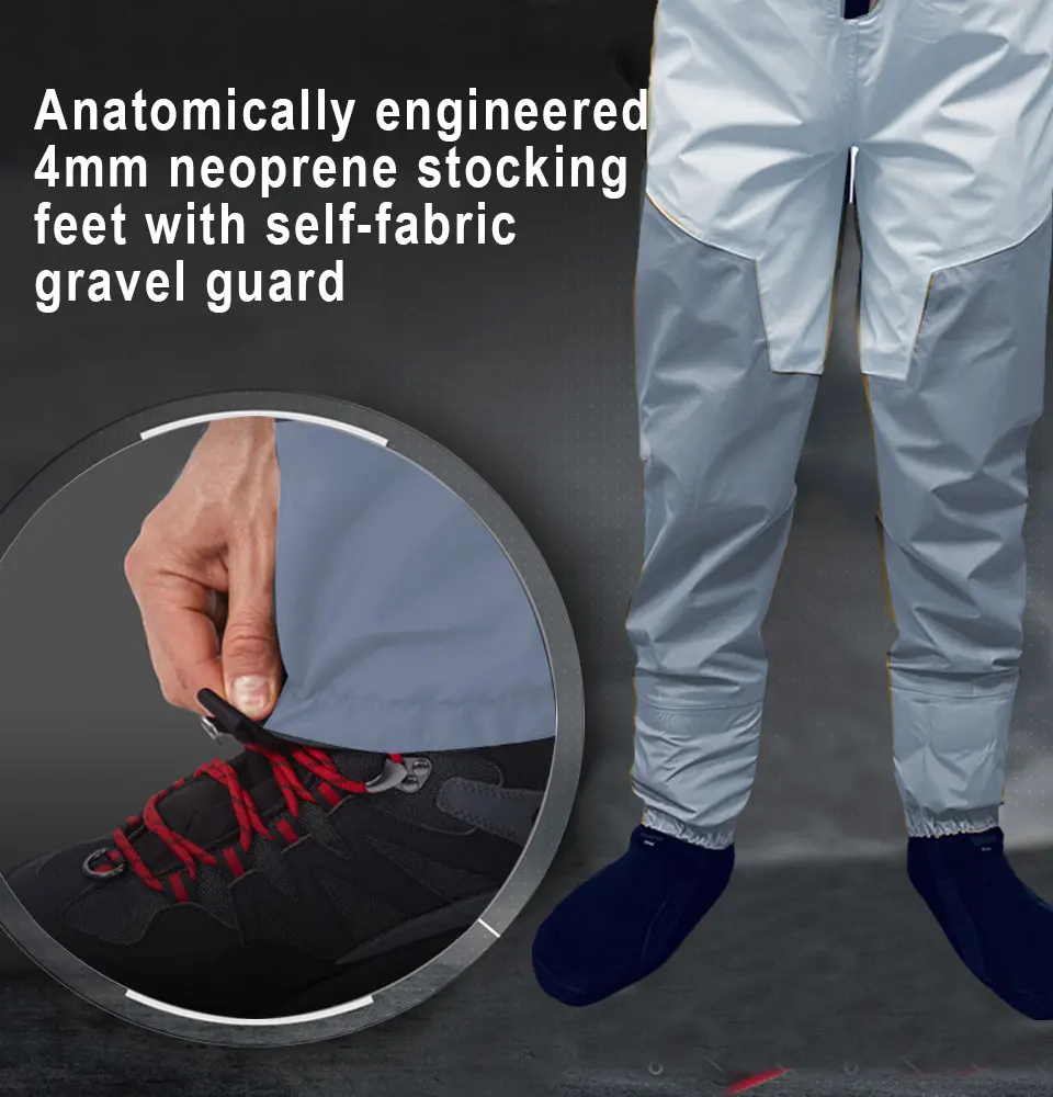 Los botines de neopreno de 4mm tienen forma de pies, no como tubos. Las botas de vadeo se ajustan mejor y evitan el incómodo amontonamiento de los botines al vadear.